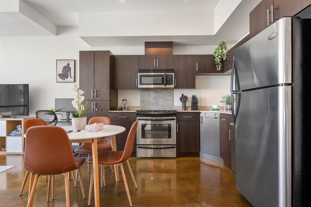 Wake up to stunning skyline views in this stylish 2-bed, 1-bath condo nestled in one of Calgary’s most vibrant neighbourhoods. Just steps from the downtown core, 17th Ave, Stampede Grounds, and some of the city’s best restaurants, cafes, and nightlife — you’re truly in the heart of it all. This sleek and modern space features 24/7 check-in, A/C, free underground parking, full stocked kitchen and bathroom. Basically everything you need for luxurious stay, we’ve thought of it.
