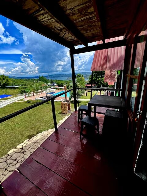 Casa de Campo "La Maria " es una casa campestre muy tranquila y acogedora. Cuanta con 5 habitaciones y 4.5 baños cocina interior y exterio. Tiene una hermosa piscina y Jacuzzi, la casa cuenta con un kiosko de 2 pisos en el primer piso esta el Fogón de leña y un salón social para disfrutar en familia y con tus amistades , en el segundo piso está la mesa de billar, Sapo, footboliny podrás disfrutar de una vista del lago. La casa esta ubicada a 3 minutos del Darien y a 5 minutos de la entrada 5.