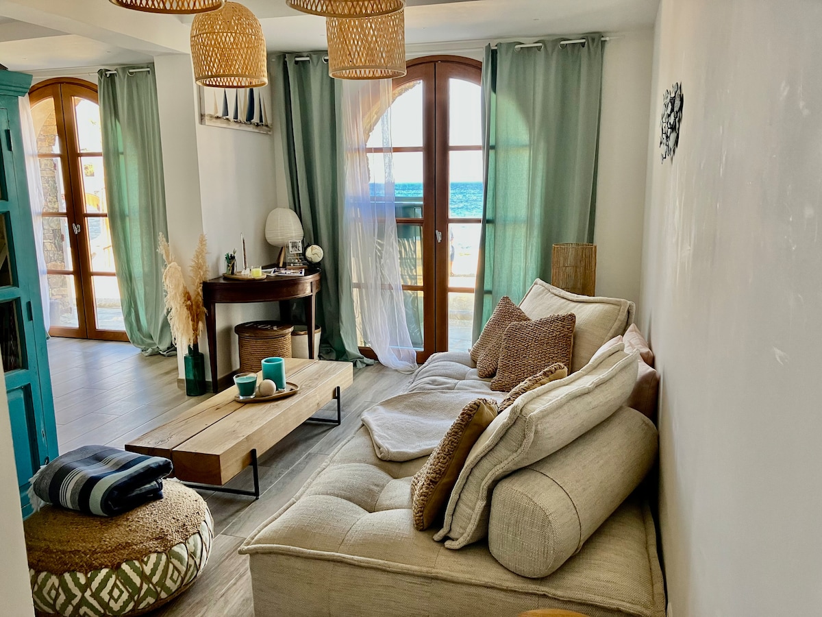 Appartement dans un hameau du cap 60 m rdc dans maison ancienne Accès facile sans vis à vis vue panoramique sur la montagne parking communale à 10mètreCuisine cellier salle de bain douche wc dispose d'un équipement cuisine salon poutre apparente sur toute la longueur du logement. Alcôve ouverte pour chambre en 140 autre coin chambre 1pers Séparation du salon par store japonais INADAPTE POUR ENFANT, pas de wifi aménagement extérieur table et chaise face à la mer entrée indépendante.