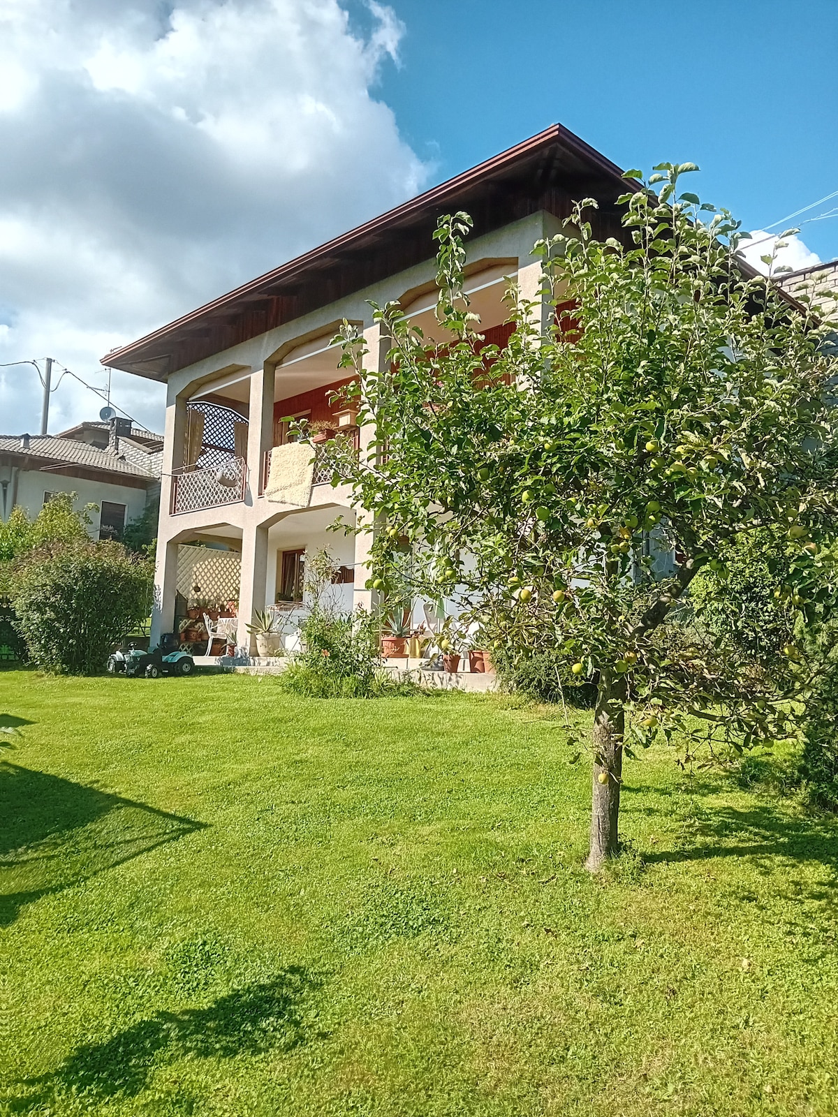 Stan je na drugom spratu naše kuće, to je neka vrsta farme. Ima lijep pogled na Alpe i naš vrt. Drveni podovi, 3 spavaće sobe i 2 kupatila. Apartman ima bračni krevet, kauč i kuhinju u spavaćoj sobi. Još jedna soba sa dva kreveta i sofom, i treća soba sa bračnim krevetom koji mogu razdvojiti u dva kreveta za jednu osobu.