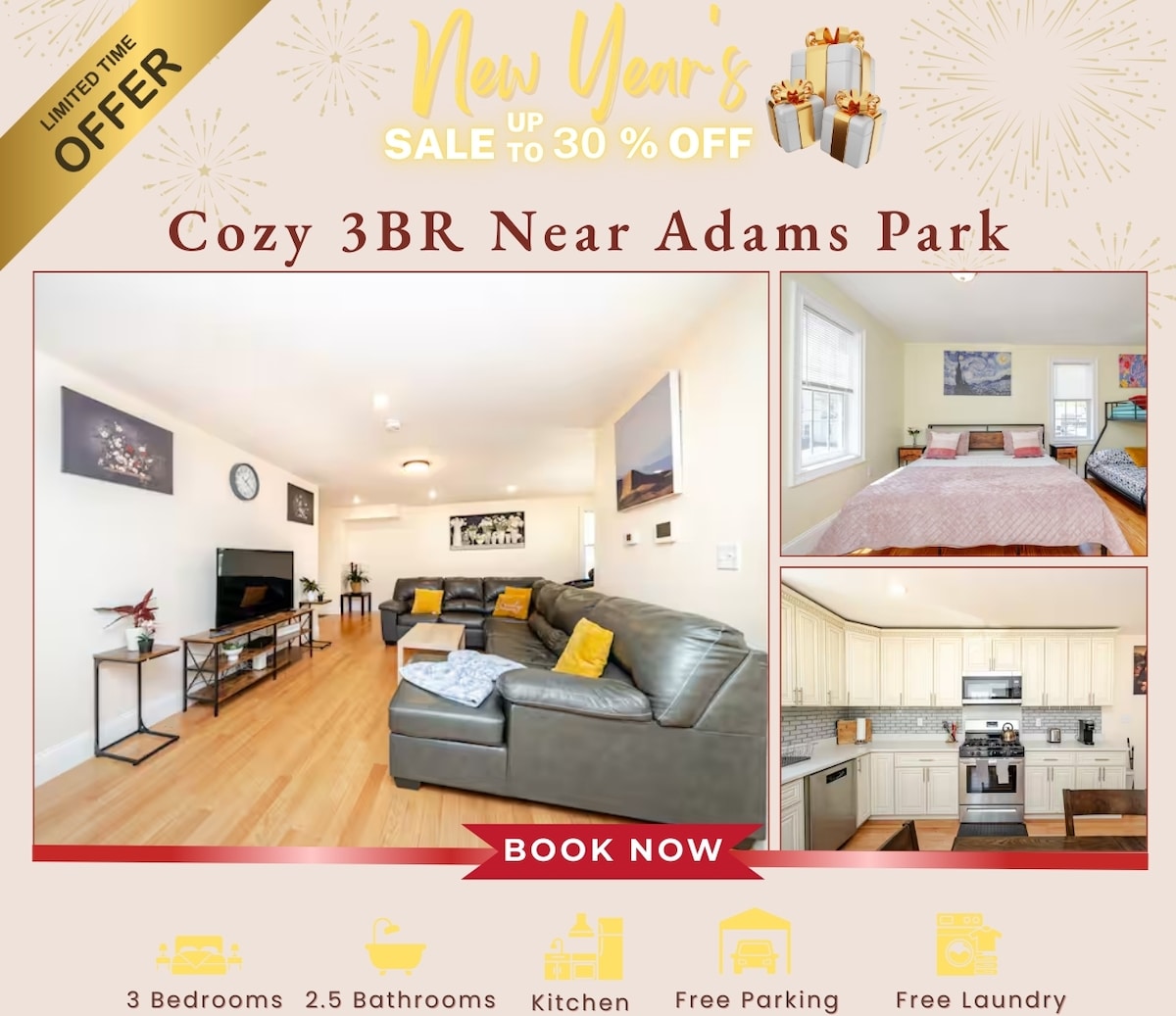 37 - 3BR Quincy | Cozy Townhouse near Adams Park