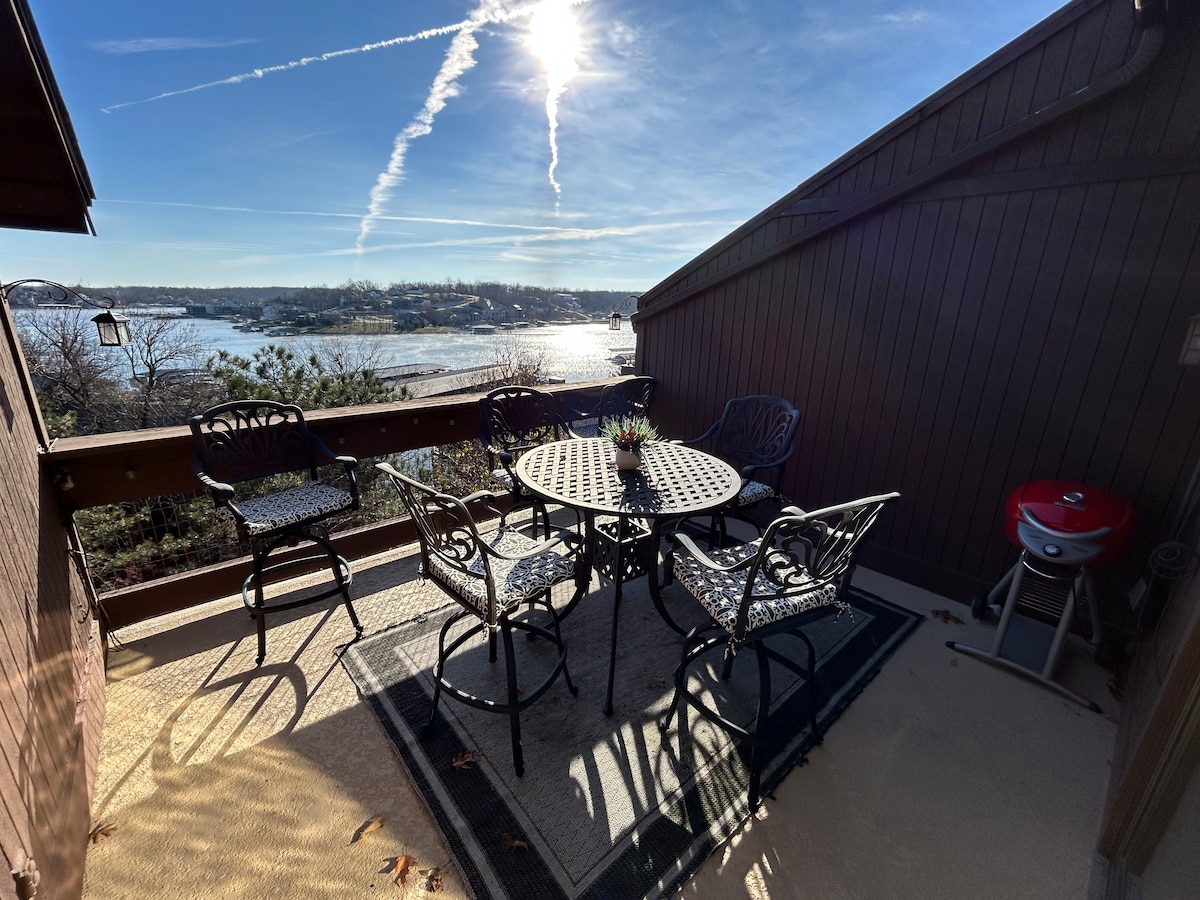 Kondominij uz obalu 2BR/2BA na jezeru Ozarks nudi sve što vam je potrebno za opuštajući odmor - spavaonica 8! Uživajte u pogledu na jezero, unutrašnjim/vanjskim bazenima, pikbolu, košarci, teniskim terenima i igralištu. Potpuno opremljena kuhinja, privatni balkon i udoban životni prostor. Nalazi se u centru grada, u blizini restorana, prodavnica i atrakcija. Savršeno za porodice ili grupe, opustite se i igrajte na jezeru! Rezervišite sada i stvorite nezaboravne uspomene na jezeru!