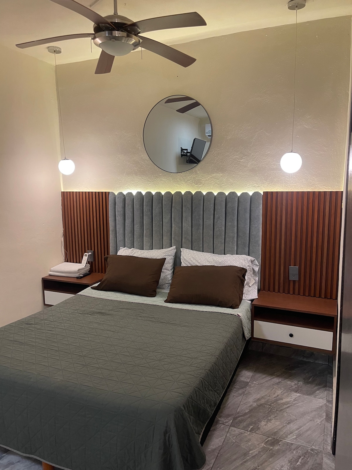 Uživajte u jednostavnosti ovog mirnog smještaja 5 minuta vozilom od fiskalnog pristaništa i 5 blokova od Malecón Turístico, u blizini opštinske pijace Morelos, parka Morelos i crkve San Jose del Mar, 2 bloka prolaze pored kamiona koji vas vodi do centra grada i komercijalnih trgova, stan za dvije osobe maksimalno 3, ima sve što vam je potrebno za kuhinju, spavaću sobu i malo kupatilo i udoban zajednički prostor.
