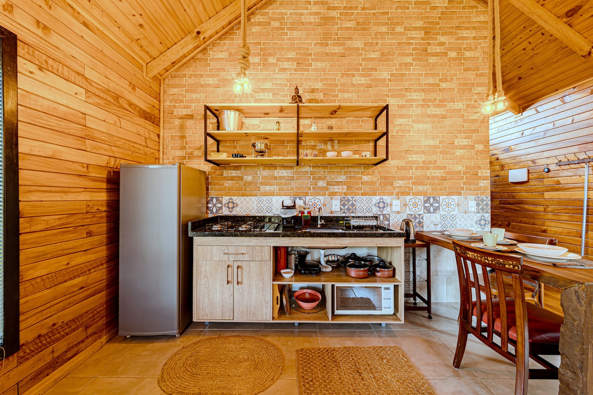 Opustite se u ovoj vrhunskoj kolibi na vrhu planine s panoramskim pogledom! Uz jedinstvenu lokaciju i samo 12 km od centra São Bento do Sula, na površini većoj od 400 hiljada m², imate potpunu privatnost BEZ SUSJEDA... Pored dvostruke hidromasažne kade, brvnara ima klima-uređaj, a uključuje i drva za ogrjev i ugalj (standardna količina). Na 900 mts. nadmorske visine, pored zalaska sunca, proglašen je najljepšim u regiji. Standardna hotelska soba, s posteljinom i peškirima.