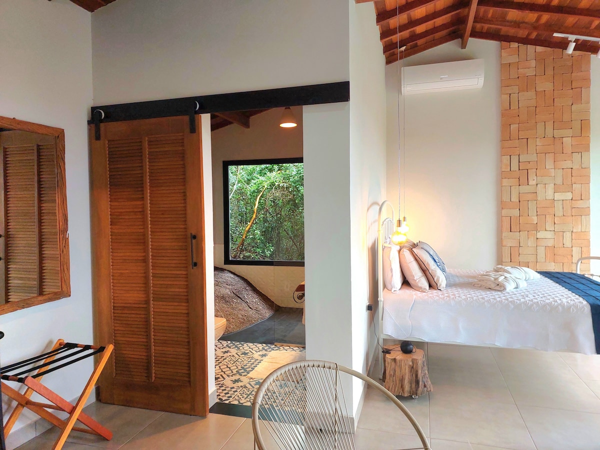 Sklonište unutar Atlantske šume, 30 minuta od glavnog grada SP-a, u Serra da Cantareiri. Uživajte u ovom šarmantnom i romantičnom smještaju usred prirode. Opustite se na našoj terasi s jacuzzijem i prekrasnim pogledom na šumu. Možda će vas posjetiti nekoliko vrsta životinja i ptica. Uživajte u kaminu, vinu i vrlo zelenom. Doživite nevjerovatan doživljaj osjetilnog i zvučnog uranjanja u prirodu! VAŽNO: Ne vršimo rezervacije putem aplikacije za razmjenu poruka! Čuvajte se prevara