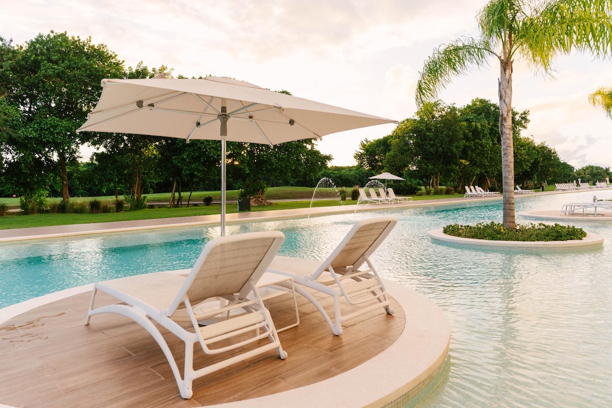 Dobro došli u svoj tropski smještaj u Punta Cani! Smješten u ograđenoj zajednici, ovaj šarmantni stan nudi jedinstveni privatni balkon, teretanu, teren za golf, više bazena i vještačku plažu s barovima i restoranima. Udaljeni ste svega nekoliko minuta vožnje od lokalnih plaža i nekoliko minuta od supermarketa, centra Punta Cane i restorana. Aerodrom je udaljen brzih 20 minuta vožnje. Uživajte u brzom Wi-Fi-u, Netflixu i društvenim igrama. NE ✅naplaćujemo dodatnu naknadu za potrošnju električne energije:)