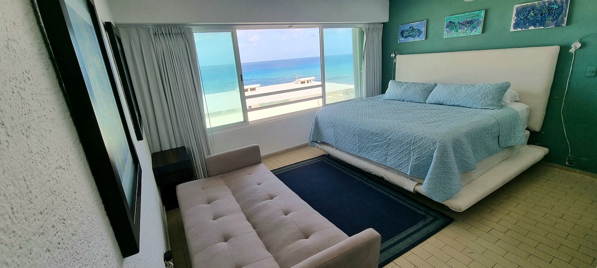 1 bedroom sleep 5. Equipped with 3 fans and 2 AC units. YOU PAY FOR THE ELECTRICITY you use APPROXIMATELY $4 DOLLARS A DAY OR if you leave A/C on all the time it could be $8 a day, not normal. Convenient, 2 level/ across from grocery store and police station on Cancun's most exclusive beach area minutes from everything! 3 pools, 24/7 security, parking, WIFI, equipped. Yes the best location and favorite beach.