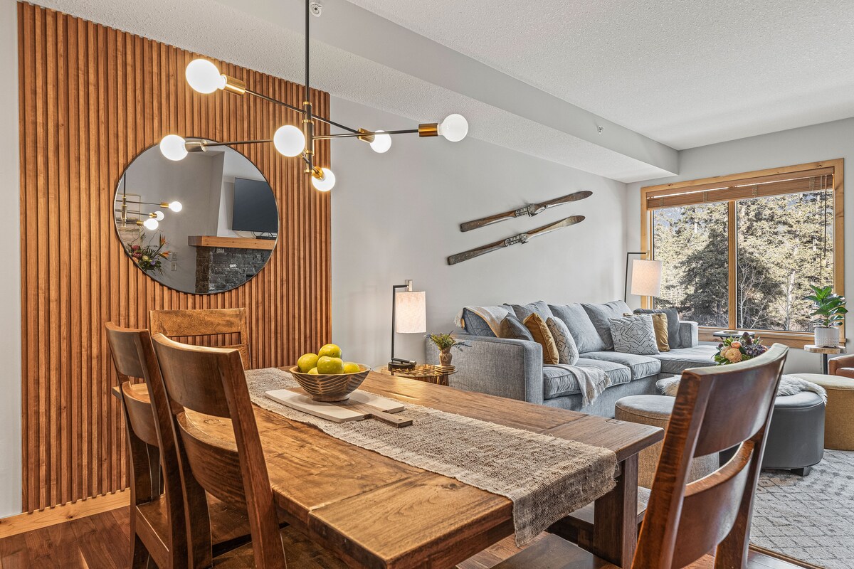 Dobro došli u galeriju Rundle s panoramskim pogledom na planine na sjeverozapadu s pogledom na prvi i najbolji... veličanstveni Nacionalni park Banff u Kanadi. Dramatični svodni strop od 3 metra i oko dvospratnog zida prozora od 12 stopa pruža izvanredan pogled na veličanstvene planinske vizure. Kondominij je izgrađen 2004. godine, u potpunosti renoviran 2020. godine uz dodatak uređenog zida kanadske umjetnosti. Moderan kondominij s rustikalnim planinskim stilom za luksuzno, ali udobno planinsko utočište.