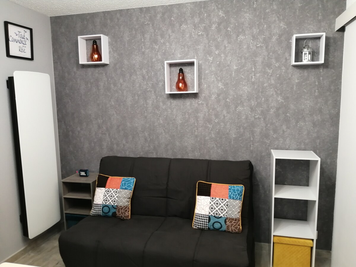 Lijep studio u blizini željezničke stanice! Smještaj prikladan za 1 ili 2 osobe. Idealno smješten u prizemlju samostojeće kuće, ovaj smještaj je potpuno nezavisan i gostima nudi potrebnu udobnost. Dvorište i privatni parking prostor nude mir i izbjegavaju brigu o parkiranju, što je sve problematično u Aurillacu! Sve je u krugu od 5 minuta hoda: pekara, barovi, restorani, apoteka...moguće je boraviti bez automobila!