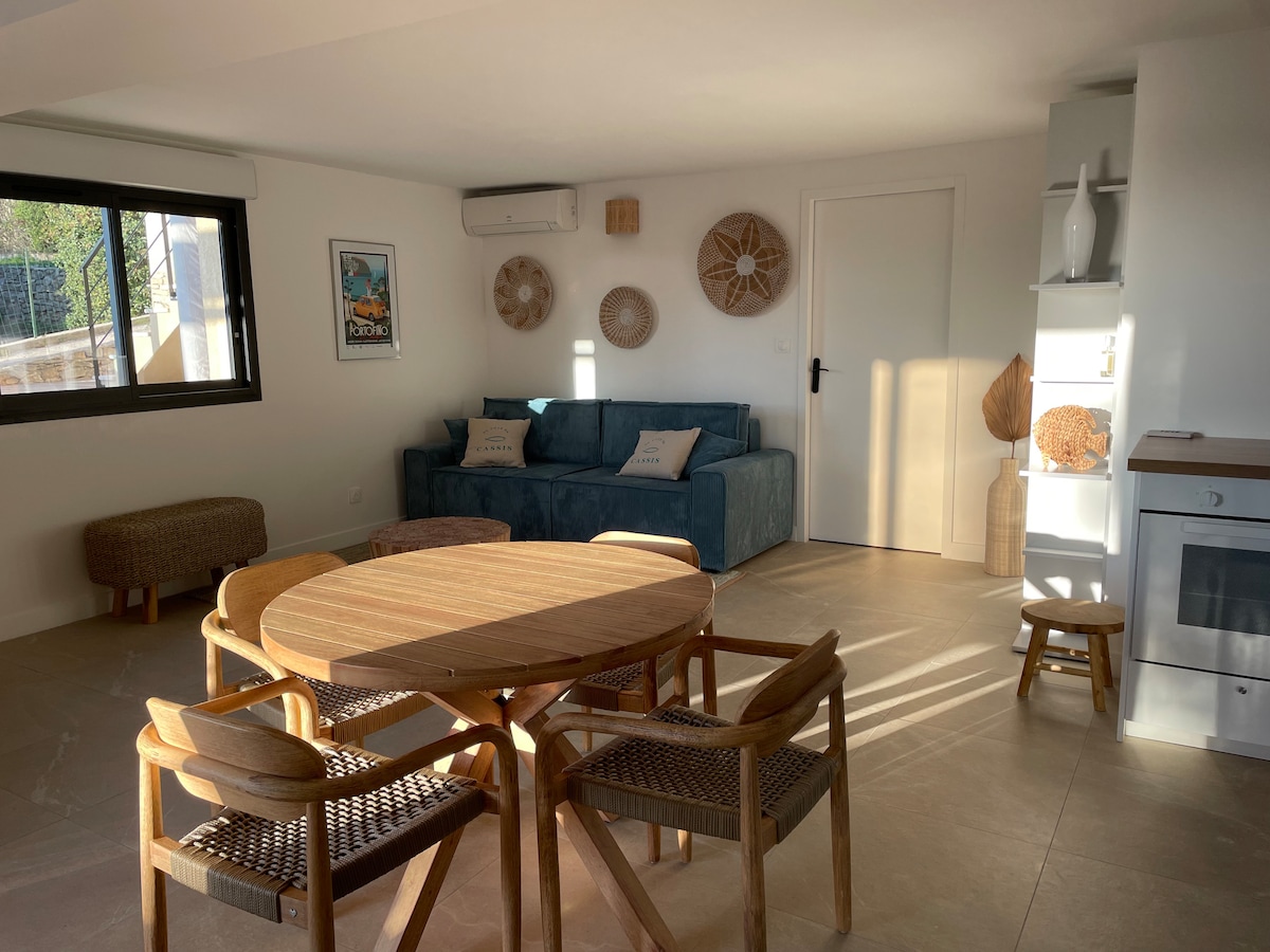 Vrlo lijep stan od 42 m2 s terasom u luci Cassis , sardinette ima izuzetan pogled na more i Cap Canaille. Potpuno renoviran od strane dizajnera enterijera Premium sadržaji i sve željene udobnosti (klima uređaj, mašina za suđe, sušilica za veš, mikrovalna pećnica , Nespresso mašina). Ovaj mali ambijent udaljen je 5 minuta hoda od plaža i u blizini poznatih kalankova Cassisa.