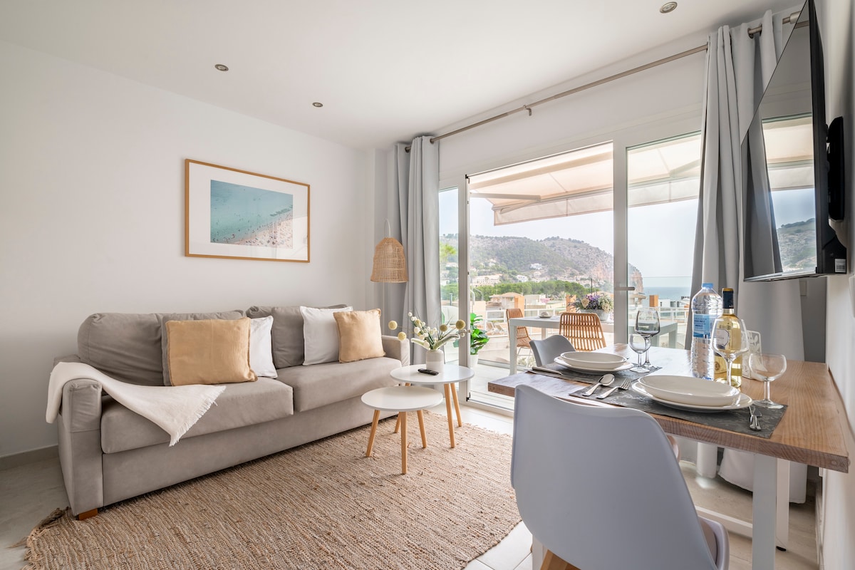 Elegant newly renovated apartment 200 meters from the beautiful beach of Canyamel. It has a dining room with an open kitchen, a bedroom, a bathroom and a large terrace with excellent views of the bay, with an outdoor dining area for four people and a relaxation area. It has a communal swimming pool and solarium with panoramic views;Parking for customers. Fully equipped with air conditioning and heating in winter and with all the comforts, it has Wifi, Netflix and Prime Video, and two TVs,.