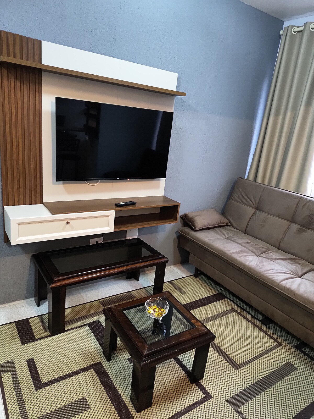 Provedite ugodne trenutke u ovom stanu, pažljivo uređenom kako biste pružili udobnost i spokoj. Prostor opremljen Wi-Fi mrežom, klima uređajem od 12.000 Btu, 32-inčnim LED TV-om, raznovrsnim kanalima, mašinom za pranje veša, aparatom za kafu, bračnim krevetom za par i udobnim kaučem na razvlačenje. Jednostavan pristup za one koji dolaze u Pelotas, bilo poslovno ili u slobodno vrijeme. Nekoliko minuta do centra grada, plaža i kvartova! Smješten u gradskoj četvrti i blizu FENADOCE-a. 24-satni konsijerž i nadzorne kamere u kondominiju.