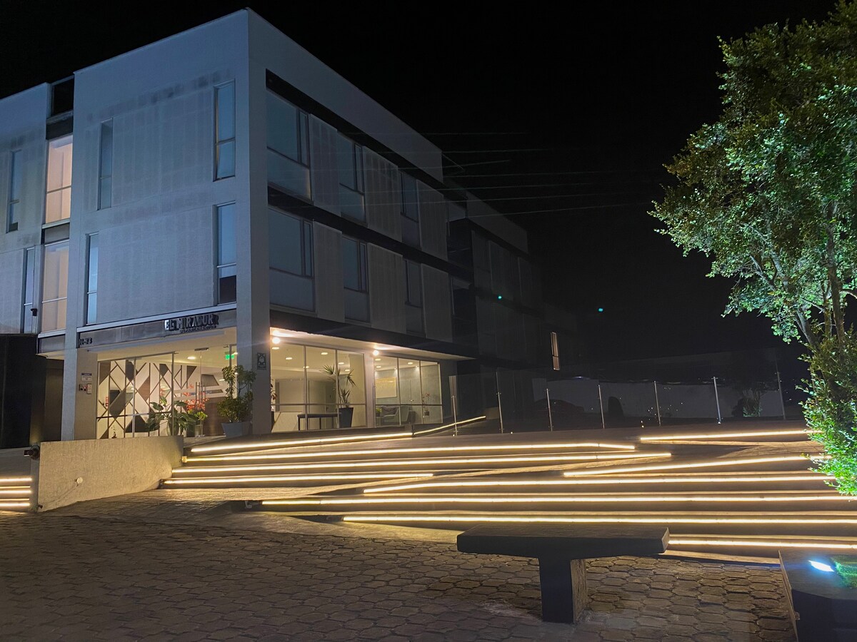 Rating 4.99 ⭐⭐⭐⭐ - Top 5 best-rated in all of Quito. Electric generator ⚡ and we issue invoices!! Very cozy 😊, bright, fully equipped, and super well located. You won’t share it with anyone else! Located in the north-central area of Quito, 1 block from La Carolina Park, El Jardín Mall 🛍️, the Chamber of Commerce, and the Metro 🚇. Close to Quicentro and CCI Mall. Banks 🏦 and restaurants on a quiet street. Flexible check-in ⏰. Gym 🏋️, co-working 💻, game room 🎲, BBQ 🍖& jacuzzi 🛁