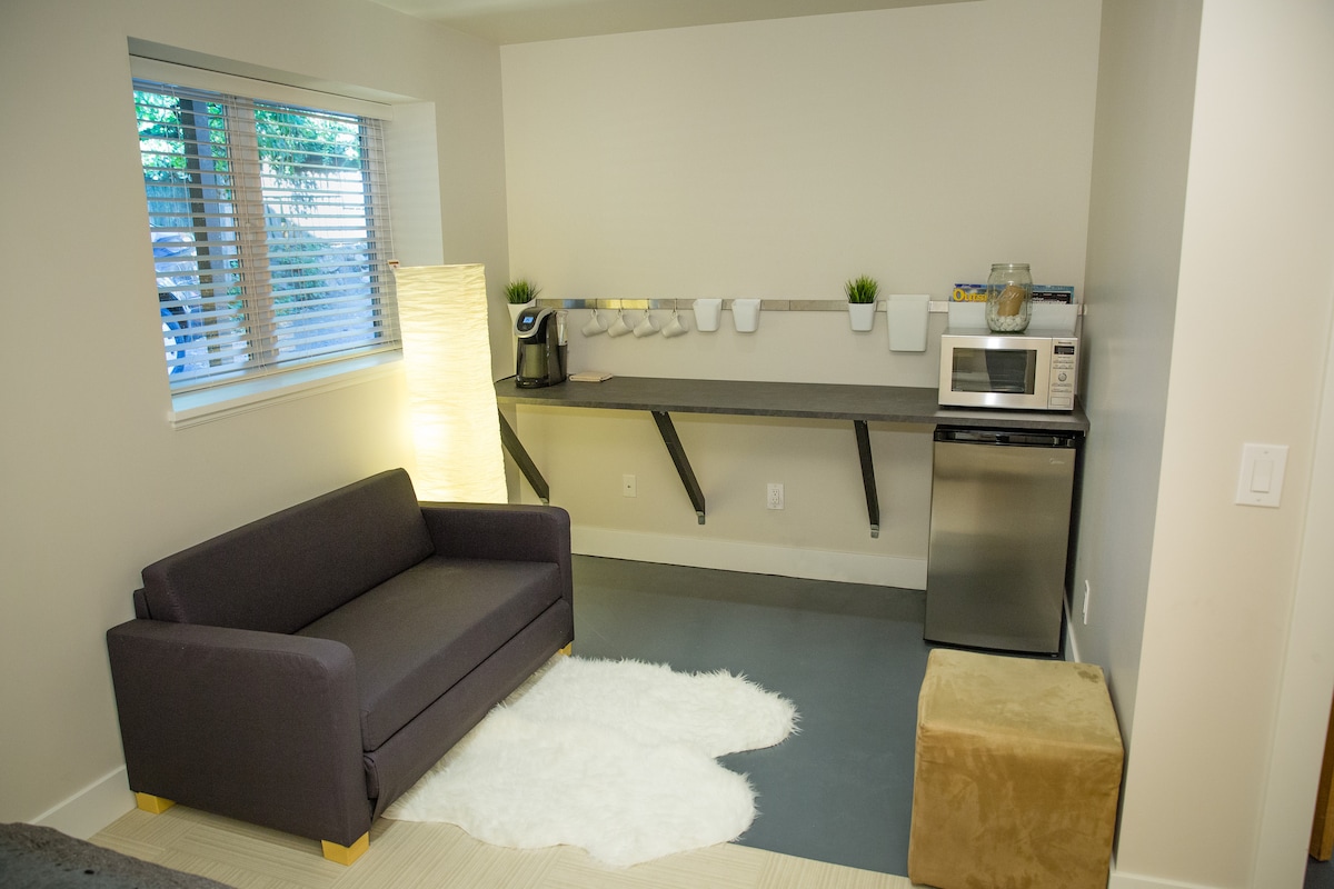 Zapadna padina Capitol Hilla: dovoljno blizu da možete hodati (ili koristiti javni prevoz) gdje god želite, ali s parkingom kako biste mogli otići dalje. Bilo da dolazite na kratak odmor u grad (# SeattlesFestival (poznat i kao Bumbershoot), # collegefootball, #Seahawks), tehnološki intervju ili morate biti blizu voljene osobe u bolnicama u susjedstvu, naša prostrana jednosobna soba, jedno kupatilo, s čajnom kuhinjom i vešom učinit će da se osjećate kao kod kuće. Pročitajte naše uslove vezane ZA COVID-19.