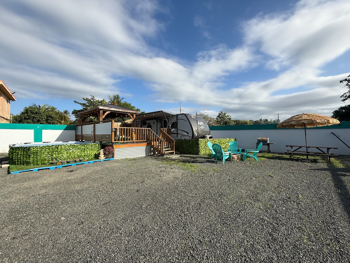 Discover the perfect escape at "El Camper," a charming RV nestled on a tranquil inner alley off Highway 110 in the vibrant town of Aguadilla. Designed for relaxation and memorable experiences, this cozy haven offers everything you need to unwind and explore the best of PR. El Camper combines comfort with nature, featuring a warm and inviting atmosphere surrounded by a secure fence and thoughtfully decorated with natural elements. Enjoy a range of amenities designed for relaxation and fun.