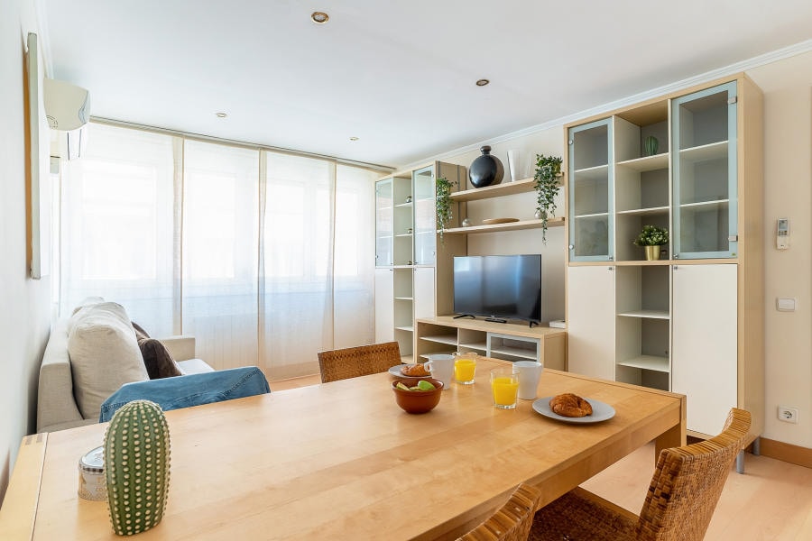 Prostran i svijetao stan od 95m2, kompletno renoviran, u modernističkoj zgradi. Ona čuva stare elemente koji čine "La Pepa" vrlo posebnim, gostoljubivim i jedinstvenim prostorom u Barceloni: fasada "trencadís" (arhitektonski element koji Gaudí i drugi modernistički arhitekti široko koriste u svojim radovima) y stare hidraulične pločice na terasi. Izložene drvene grede, visoki plafoni i nešto art déco namještaja