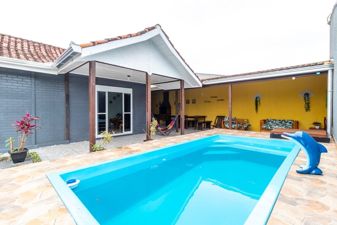 Odvedite cijelu porodicu u ovaj lijepi dom s mnogo prostora za zabavu. Glavna kuća, prostor za 4 vozila, roštilj, solarno grijani bazen i ograđeni za sigurnost djece, sve sobe imaju klima uređaj, nove uređaje, 2 frižidera, mašinu za suđe za 10 usluga. Možete čuti more, 1 blok od plaže. Supermarket, restoran i prodavnica sladoleda su vrlo blizu. Udaljeni smo nešto više od 1,5 sata od Curitibe i 15 minuta za prelazak na Ilha do MEL