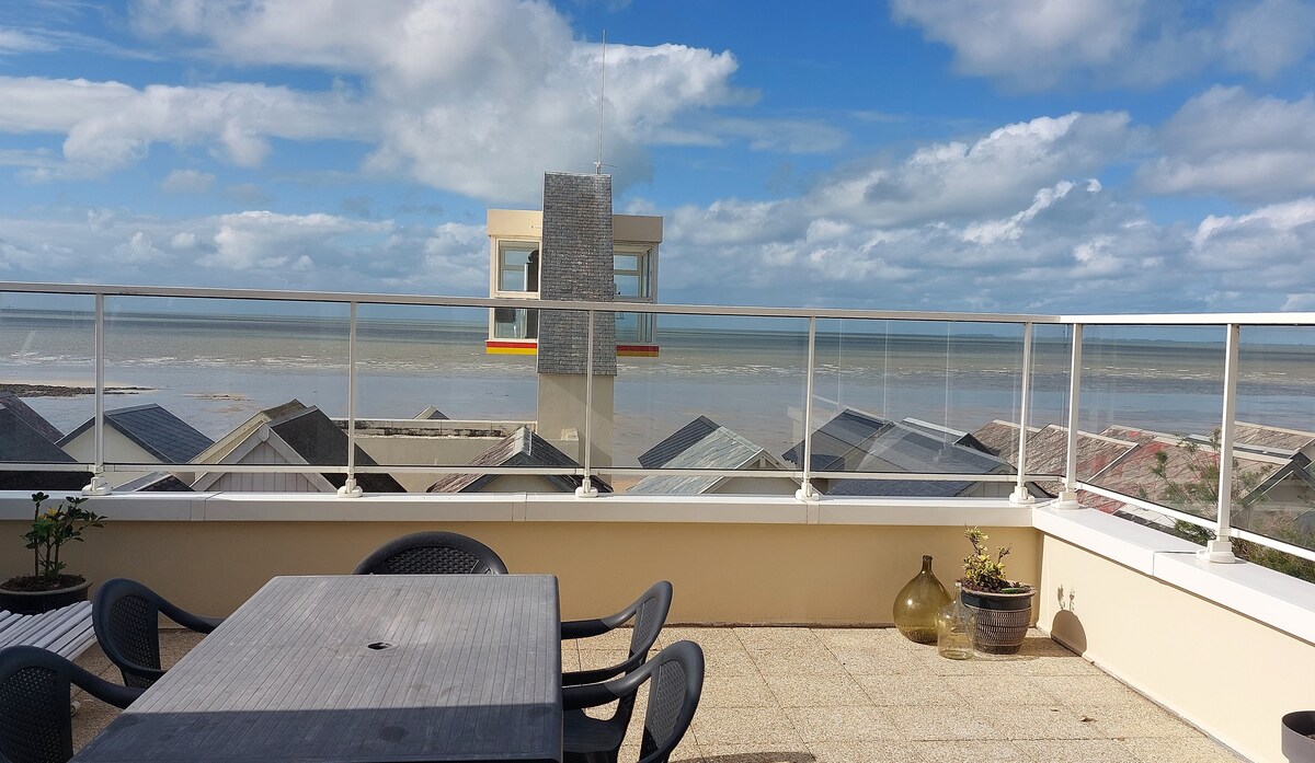 Dvoetažni stan na plaži u najboljem dijelu obale Normandije. Granville, Saint Pair sur Mer i Jollouville udaljeni su 10 km. Izvanredan pogled na zaljev od Granvillea preko puta Saint Maloa. Poslužuje ga odlični restorani i bistroi u istoj zgradi, a drugi su na pješačkoj udaljenosti. Stan je novouređen i idealan je za parove. Potpuno opremljena kuhinja pruža udobnu i praktičnu blagovaonicu, a ima pogled na more.