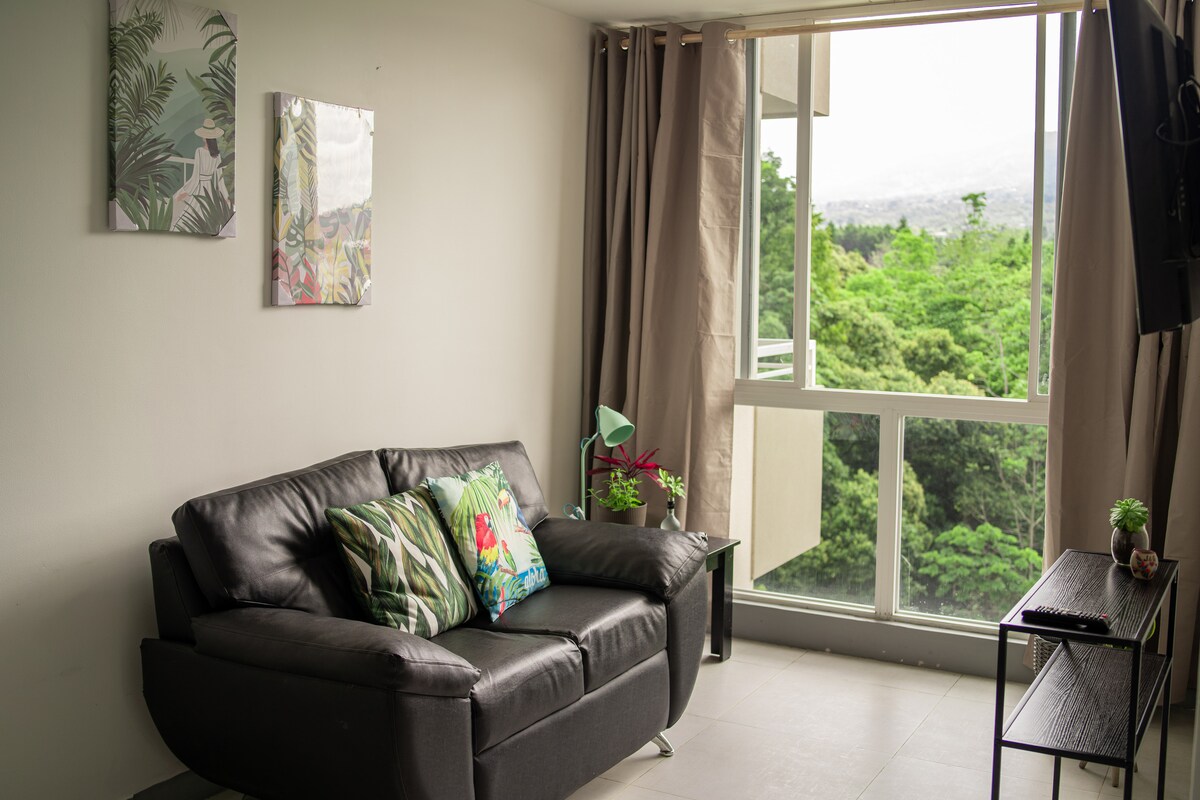 Uživajte u promjeni rutine u ovom mirnom smještaju koji se nalazi u centru grada, 24 km od vulkana Irazu, termalnih izvora i aktivnosti na otvorenom. Naš mali stan vam omogućava da se opustite, odvojite od svakodnevice sa svojim sadržajima i pogledom na planine. Ako želite šetnju, možete to učiniti jer smo udaljeni 5 minuta hoda do tržnih centara, kafića, italijanske hrane, argentinske, korejske, supermarketa, Mc Donalda, BK i još mnogo toga!