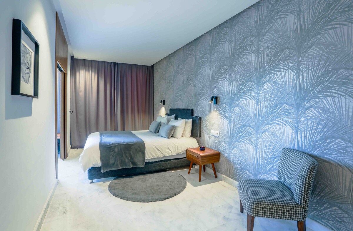Uživajte u elegantnom, centralnom smještaju koji je dizajnirao jedan od najboljih promotera u Casablanci. Prebivalište u stilu hotela, s 24-satnim nadzorom, uslugom pranja veša, fitnesom na terasi, vrlo brzim internetom itd. Bilo da posjećujete Casablancu poslovno ili u slobodno vrijeme, ovaj smještaj će vam boravak učiniti zabavnim. Smješten u srcu Casablance, u blizini je svih sadržaja ( parkovi, restorani, prodavnice, spomenici )