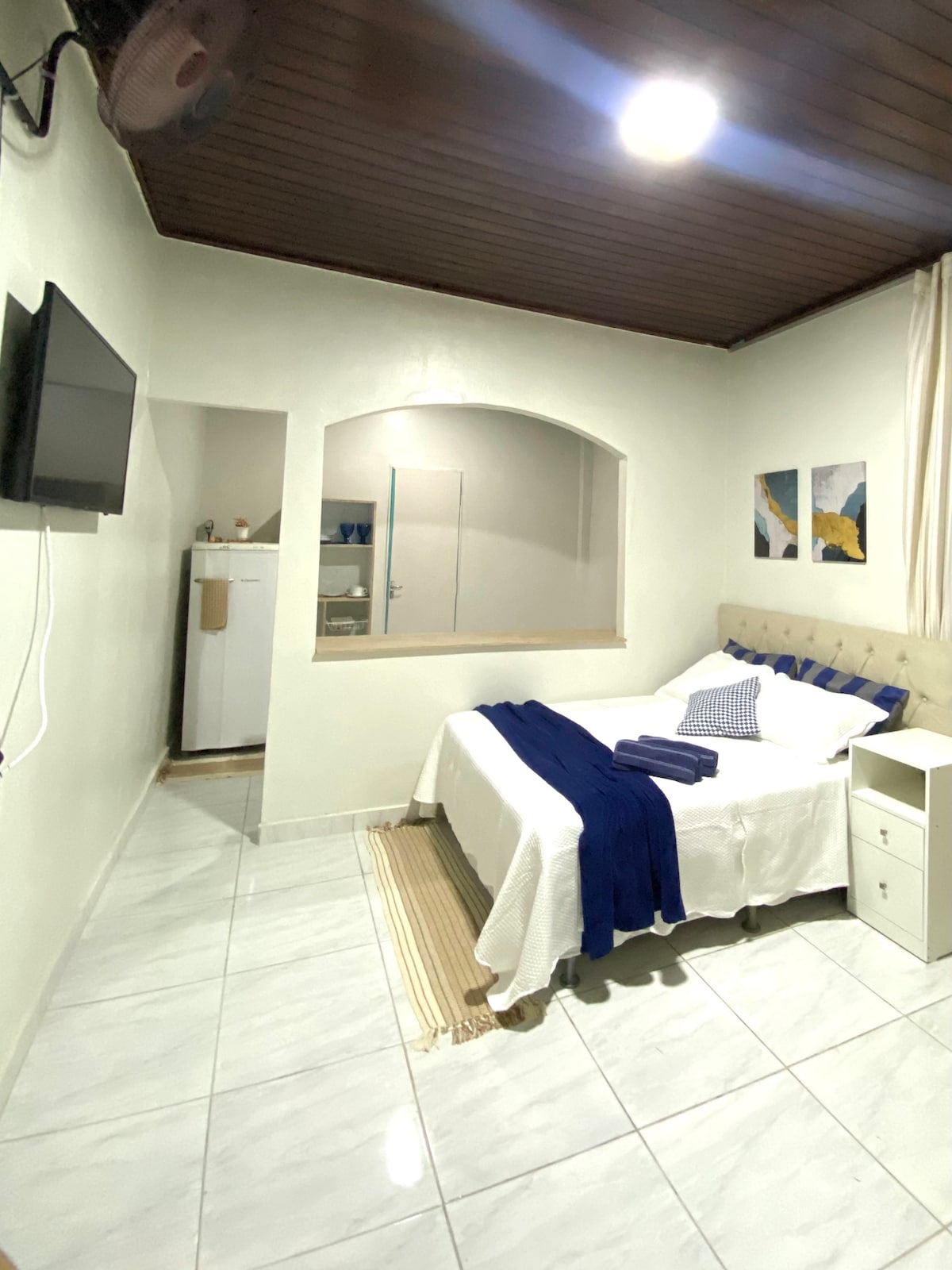 Privatnost s krevetom, frižiderom, Wi-Fi mrežom Prostran i udoban apartman, u blizini trga Estrella. Blizu centra grada, supermarketa, apoteka i restorana. Šta se nalazi u prostoru: - Novi bračni krevet; – Klima-uređaj, ventilator; - Wi-Fi; -Poltrona; - Radni stol za učenje i kućni ured; – Frižider i prostor za objedovanje. Ulaz u smještaj je potpuno nezavisan, s pristupom odmah ispred ulice Rua Raquel Lemos, u četvrti Caiçara.