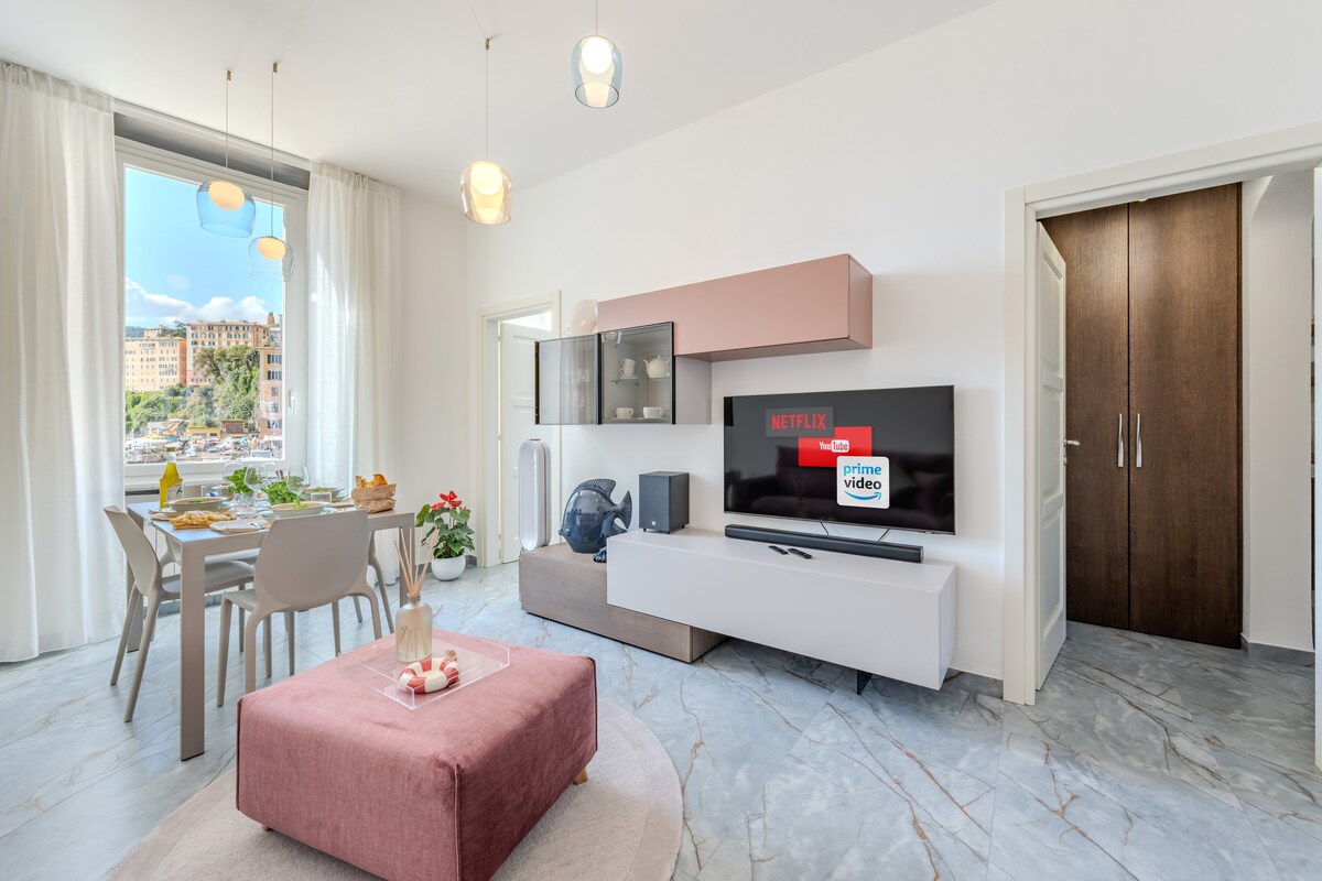 Stan ima nezaboravan pogled na zaljev Tigullio, od luke Rapallo do rt Portofina koji prolazi kroz San Michele di Pagana i Santa Margherita. Cool, udoban i gostoljubiv, nalazi se u mirnom području 800 metara od centra, u strateškom položaju da uživa u svim uslugama i posjeti najpoznatije turističke destinacije u tom području, ali istovremeno uživa u opuštajućem odmoru izvan saobraćaja i haosa trgovačkih ulica.