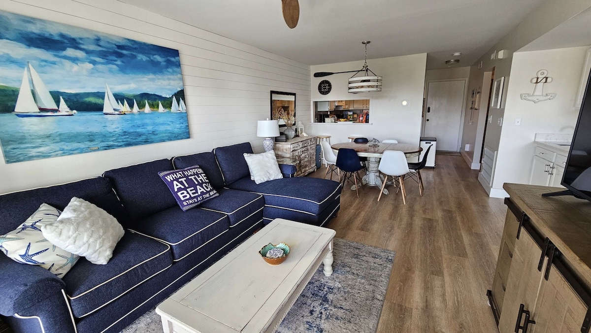 Ovaj spektakularni stan s pogledom na okean s vrhunskim renoviranjem 2022. godine udaljen je samo nekoliko koraka od plaže. Budite pometeni pogledom na valovite valove, bijele kapice i pristanište OKI dok se opuštate i uživate u piću na balkonu. Također ćete biti tretirani zalaskom sunca koji oduzima dah jer se boje mijenjaju svake minute širom neba. Povucite se u dnevnu sobu i odmorite umorne noge na udobnom kauču dok komunicirate s drugima u estetski ugodnom okruženju otvorenog sprata.