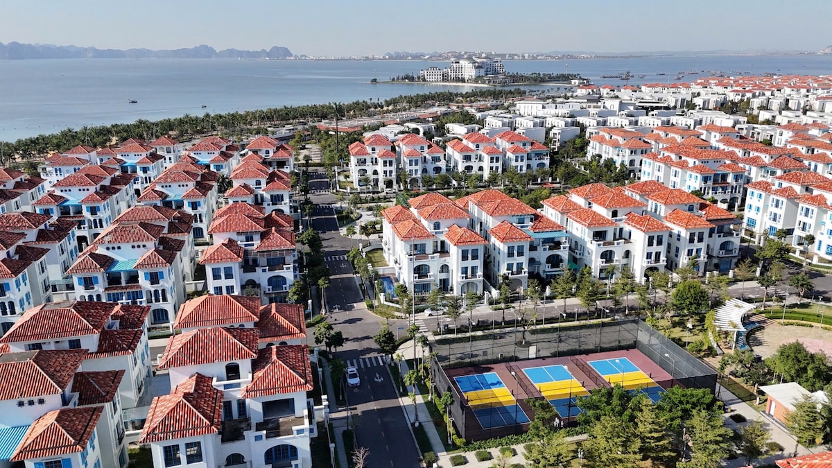 Our 6-bedroom 5.5-bath fully air-conditioned villa is located just 1 minute walk to Bai Chay beach, with easy access to top-visited tourist spots (Halong International Cruise Port, Sunworld Halong Complex, Ha Long Night Market,..) We offer high privacy with flexible sleep settings for your trip with families, friends or corporate stays with a high-end touch & a tranquil coastal vibe. Private transportation Day cruises in Halong. Sunworld park tickets. Catering services. Catba itineraries.