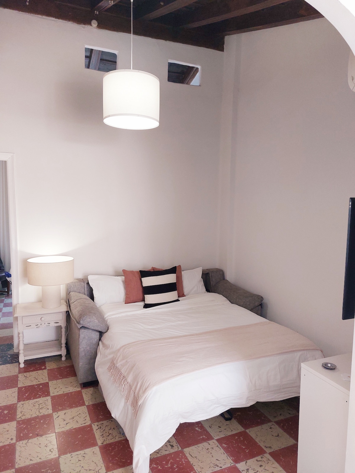 3 minute do Alcazara 6 minuta do katedrale, Giralda 10 minuta do trga Plaza de España 12 minuta do Torre de Oro, rijeke - Tiha nekretnina – Izuzetno brz Wi-Fi – Centralna klima u svakoj sobi - Aparat za kafu u kapsuli – Pristupačno automobilom, nema parkinga u sklopu objekta Ovaj stan je dio historijske zgrade Casa de Alfaro koja je stara 500 godina. Nudi privatnu i domaću atmosferu, a istovremeno je izuzetno blizu svih spomenika.