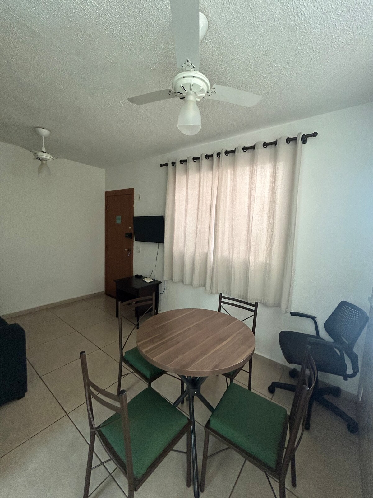 - svjež i prozračan 1. sprat. - Kondominij s kondominijom u trajanju od 24 sata. - Nalazi se u blizini centra grada i luksuznog kondominija. - Pored pekare, apoteke i benzinske stanice. - Jednostavan pristup. - Sala. - Kuhinja. - 1 mjesto za automobil. okrug - Ventilatori dnevna soba/spavaće sobe. - Zrak (četvrti par) - Wi-Fi. - Trpezarijski sto. - Krevet/sto/kada. - Cortina blackout. - AirFryer. - Blender. - Kuhinjski pribor. - Tuš s toplom i hladnom vodom - Rezervoar. - Daska za peglanje i pegla. Opustite se s porodicom