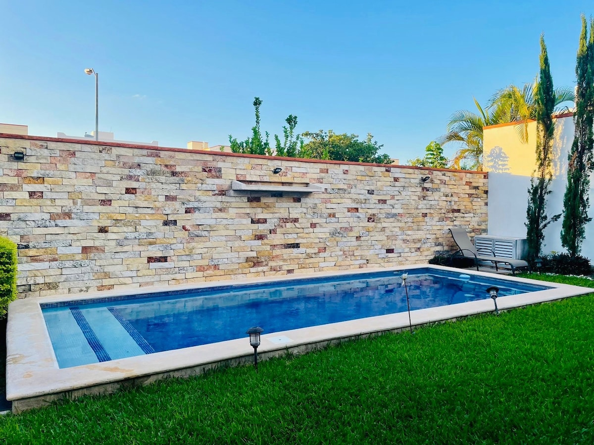 Ova kuća je osvježavajuća oaza, samo 15 minuta od aerodroma, vrlo je prostrana, prostor oko bazena i terasa su fantastični za uživanje u predivnoj klimi Méride tokom cijele godine, a sobe su prostrane i u njih se lako može smjestiti 10 osoba u krevete. Blizu historijskog centra grada. Samo 50 km od čarobnog grada Sisala i 80 km od Celestúna. Posjetite majevske ruševine Chichen Itza i Uxmal. Otkrijte cenote kojih ima u izobilju širom države. Potpuno klimatizovano.