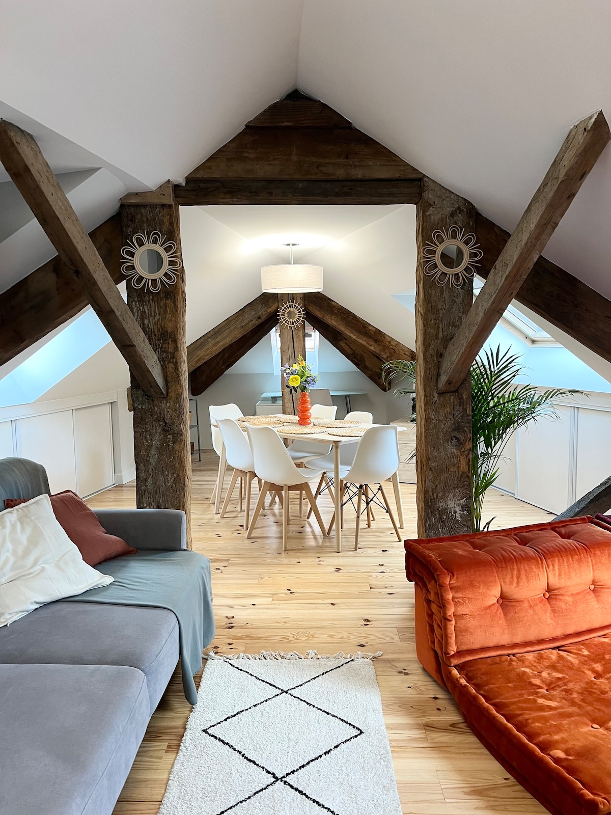 Stan 100% čahura, na drugom spratu male zgrade. Mirna lokacija dok se nalazi u srcu sela, s dovoljno parkinga koji nije privatan. Udobno gnijezdo od 35 m2 za 4 osobe, toplo i profinjeno. Terasa od 100 m2 i privatni vrt. Spavanje: 1 spavaća soba s krevetom u 140x190 i velikom garderobom, kauč na razvlačenje s pravim madracem u 140x190 Kreveti napravljeni po dolasku. Potpuno opremljena kuhinja. Kupatilo u tuš-kabini, odvojeni WC. Plahte za kupanje su uključene.
