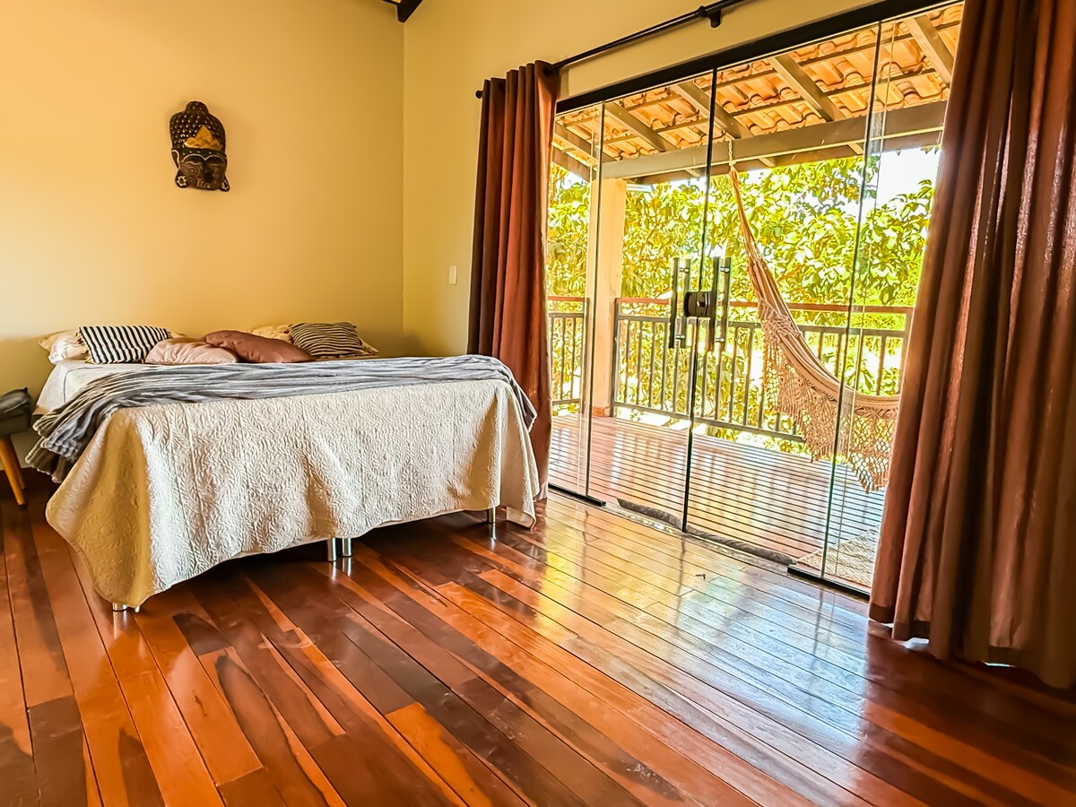 Smješten u srcu Chapade, u Alto Paraísu - Chapada dos Veadeiros. Ovaj jedinstveni smještaj ima svoj stil! Prepuštena arhitektura i dekoracija, u potpunosti uronjena u sredinu Cerrada. Privatni pristup Rio dos Courosu, s terasom samo za vas. * Privatni pristup rijeci Couros * Klima uređaj br. 2 spavaonica i dnevna soba * 2 km od Cachoeire São Bento * Privilegovana lokacija između Alto Paraísa i São Jorgea * 10 minuta do glavne avenije Alto Paraíso * Prihvatamo male kućne ljubimce uz dodatnu naknadu