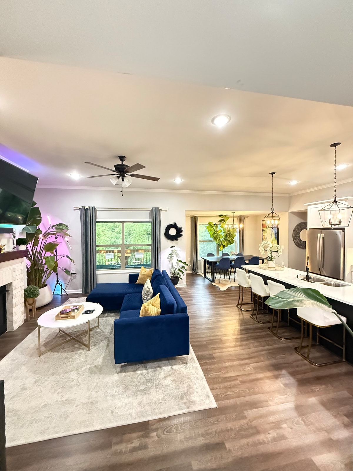 Opustite se u ovom mirnom smještaju u brvnari direktno na rijeci Spring; idealno za ribolov pastrmki/grgeča, vožnju kajakom/tubingom i opuštanje. Uživajte u udobnosti ovog utočišta izvan utabanog puta. Prostrana stražnja terasa s pogledom na vodu. Uživajte slušajući zvuke rijeke oko ognjišta koje je opskrbljeno besplatnim drvetom ili pokažite svoje vještine na gornjoj terasi s roštiljem na ugalj!