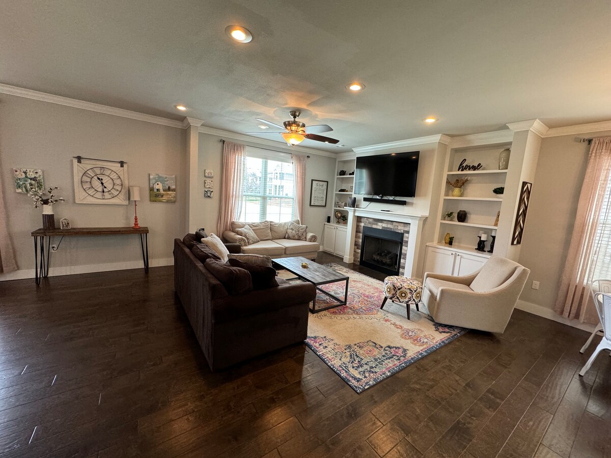 Prikladno za djecu/kućne ljubimce! Pogledajte dodatne fotografije. Praktična lokacija! 5 km do Walmart Amp-a i 3 milje do novog Mt. Hebron park sa stazama, ogromnim igralištem, terenima za pickleball i još mnogo toga! Raspored je idealan za porodicu ili prijatelje s otvorenim tlocrtom za okupljanje na prvom spratu i tri spavaće sobe na drugom spratu. Prostrani glavni apartman uključuje radni sto, privatni balkon i hidromasažnu kadu. Sve sobe imaju Roku televizore, što vam omogućava da strimujete s lakoćom. Ograđeno dvorište je odlično za kućnog ljubimca!