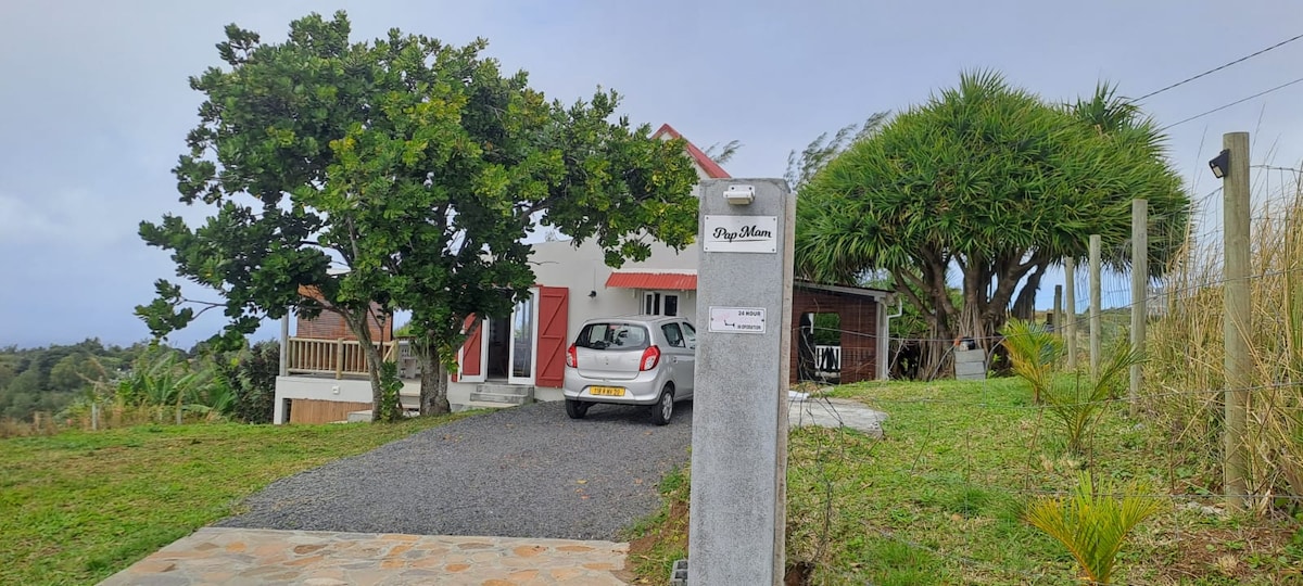 Maisonnette créole avec vue magnifique sur les îles. Située dans une vallée à 5 minutes à pieds de la cathédrale de Saint-Gabriel, au centre de l'ile, la maison est à 15 min de: -l'aéroport -Port Mathurin -des plages Elle fera le bonheur des amateurs de nature et d'authenticité. Elle est accessible par un track road (sentier bétonné) en 4x4 ou en scooter. Les transferts d'aéroport ainsi que les repas peuvent être organisés en supplément.