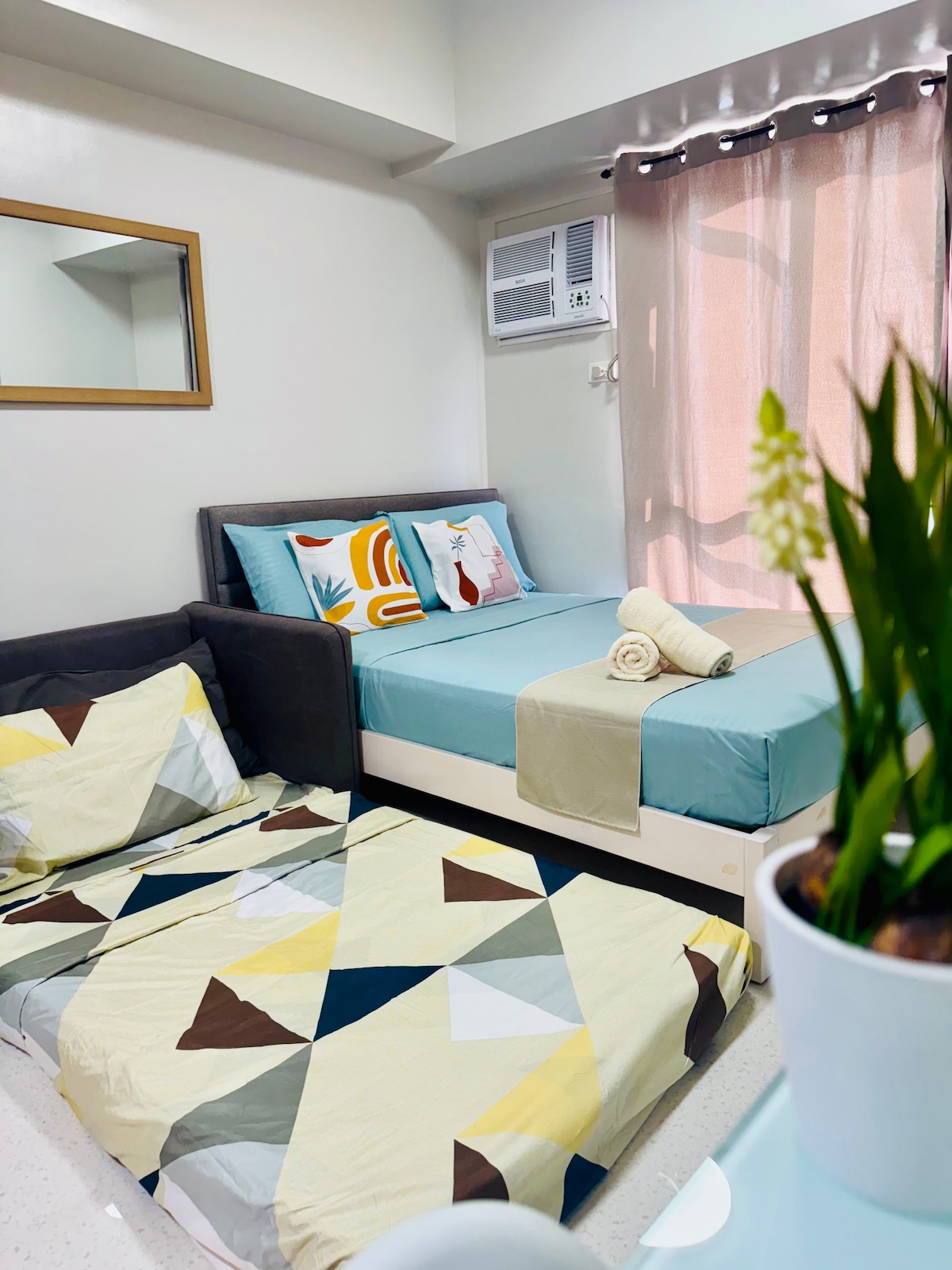 Rezervišite udoban studio unutar Cebu IT Parka, potpuno namješten, čist i dobar za 4 gosta. Nalazi se na pješačkoj udaljenosti od trgovačkog centra Ayala Central Bloc i okružen je trgovinama, restoranima, apotekama itd. koji su otvoreni 0–24. Osim toga, možete prošetati do autobuske stanice kako biste uhvatili prevoz koji ide po cijelom Cebuu. Odlična baza u Cebuu s bazenom, karaokama i društvenim igrama. Bilo da tražite stan/apartman u parku za najam u Cebuu ili zabavan boravak u gradu Cebu, ovaj Airbnb stan u parku je idealan za kratko putovanje u Cebu.