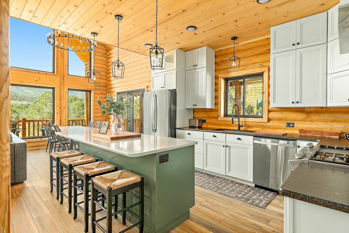 Pozdrav partneru! Doživite kaubojski san u našoj rustikalnoj brvnari s kosim krovom između nacionalnih parkova Zion i Bryce Canyon! Spava 8 osoba 🤠🌵Uživajte u planinarenju, biciklizmu, jahanju i skakanju s litica do kojih možete doći automobilom! Zatim se vratite kući i opustite u brvnari. Konji koji dočekuju preko ulice, promatranje zvijezda noću i svi zvukovi i mirisi granice. Autentično seosko iskustvo s modernim pogodnostima: Fiber internet. Čista kupatila s WC-om. Više pametnih televizora.
