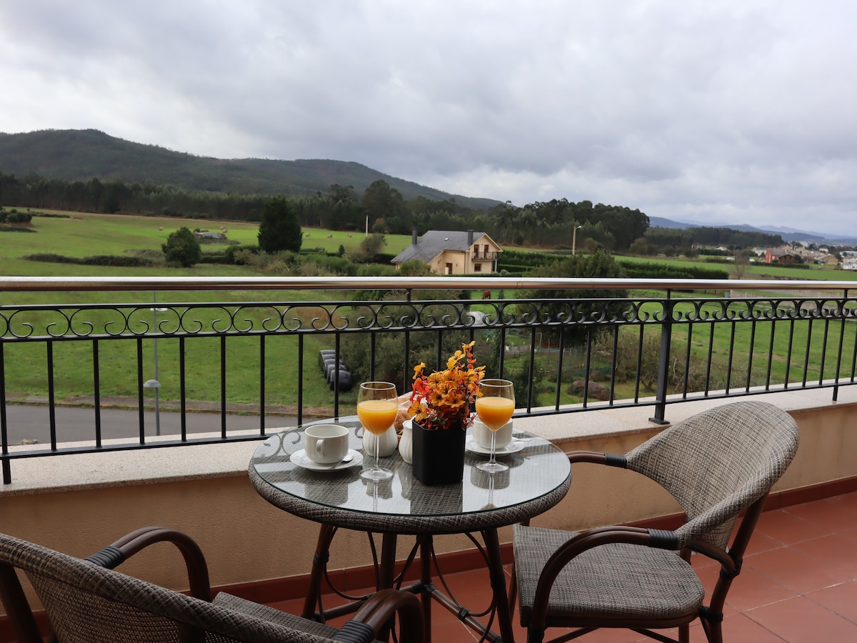 Prvi sprat kuće s pogledom na okean i planine, vrlo blizu nekoliko plaža, privatni vrt s roštiljem u kojem možete uživati s djecom ili kućnim ljubimcima. Privatni parking, koji se dijeli s vlasnicima. Ima 2 spavaće sobe i prostor u dnevnom boravku s dodatnim kaučem koji se može pretvoriti u krevet od 160 cm. Savršeno smješten, svi sadržaji u blizini i savršeni za otkrivanje Viveira i okolice.