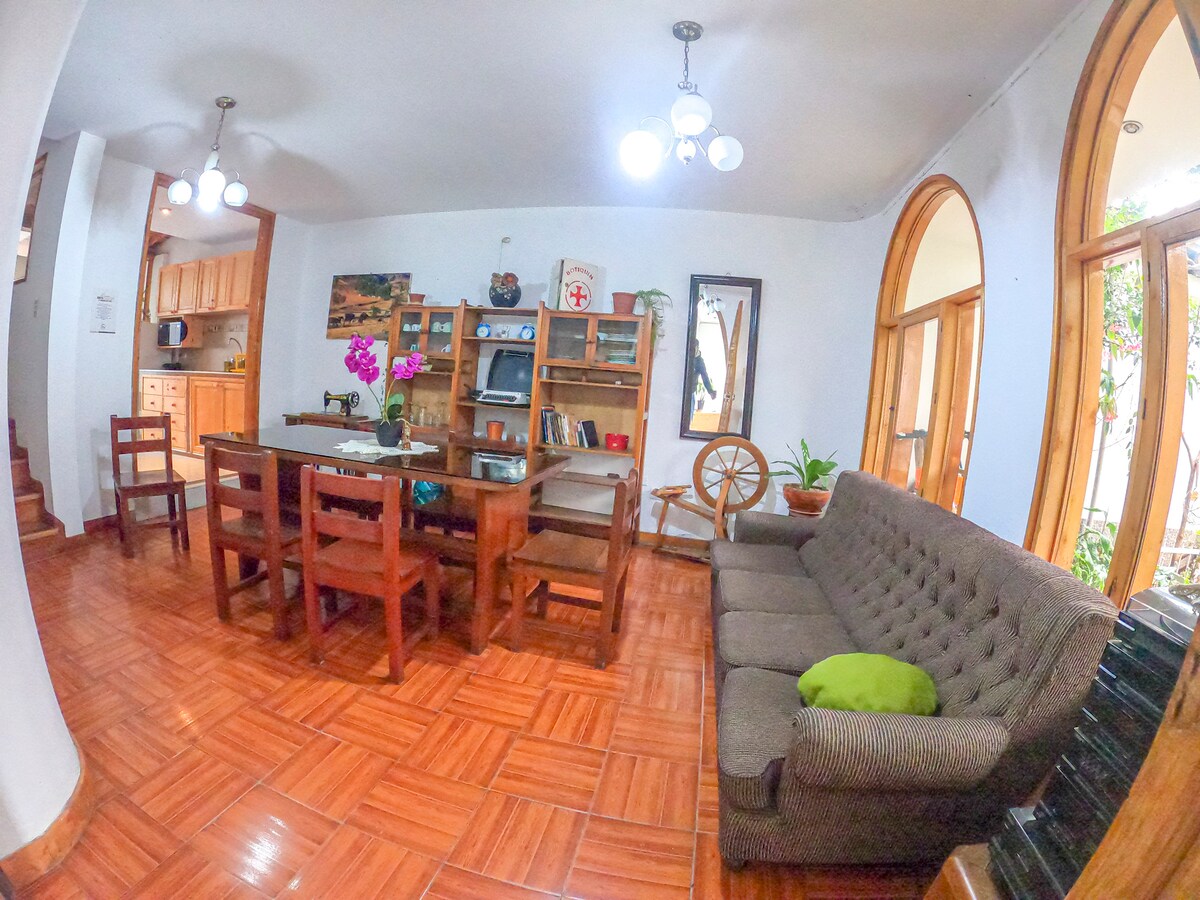 Udoban i siguran stan koji se nalazi na 3. spratu naše PORODIČNE ZGRADE, u blizini svega. Na 1. spratu ćete pronaći podrum s osnovnim potrepštinama. Također sa strateškom lokacijom: 10 minuta od Plaza de Armas i tržnih centara; 5 minuta od UNC-a, autobuskog kolodvora i Alameda de los Incas; 18 minuta od aerodroma. U blizini ćete pronaći lokalne tržnice, apoteke, restorane itd. Moja porodica i ja smo vam na usluzi kako bismo vam pomogli da uživate u boravku.