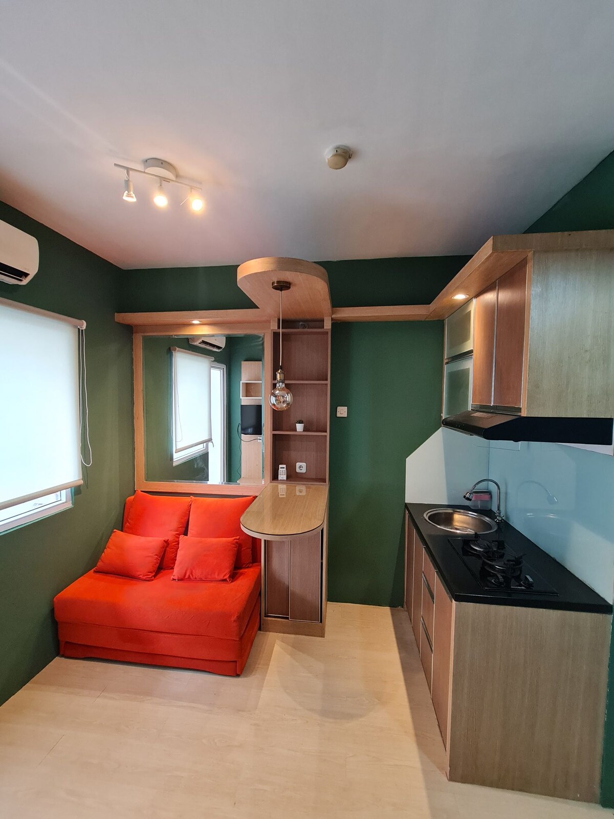 Neat and clean 1 bedroom in Chrysant Tower (blue tower) across the street from the GPS Mall, 2nd room is available for storage. The Green Pramuka is located in strategic area. If you stay here during your visit in Jakarta, you can save time by staying in the central of Jakarta close by the inner Toll highway. The tower has its own swimming pool, walk across the street you will have a mall with a lots of restaurants, a money changer, movie theaters, and many more. Secured by access card.