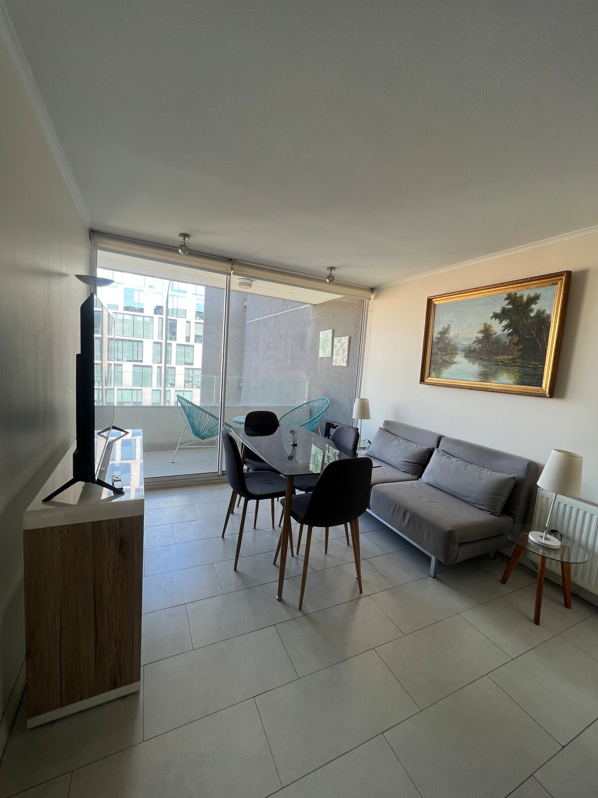 Novi stan, koji se nalazi u jednom od najekskluzivnijih područja u regiji Metropolitan. Koraci od Parque Araucano, jedne od glavnih zelenih površina Las Condesa, finansijskog sektora Nueva Las Condes, kao i Mall Parque Arauco, Open Mall, Banks, supermarketi, terase s hranom i njemačke klinike. Stan je opremljen svime što je potrebno za odličan boravak. Ima bračni krevet, kauč na razvlačenje, dvostruke zavjese, TV od 55inča, Nespresso aparat za kafu, mašinu za suđe, između ostalog.