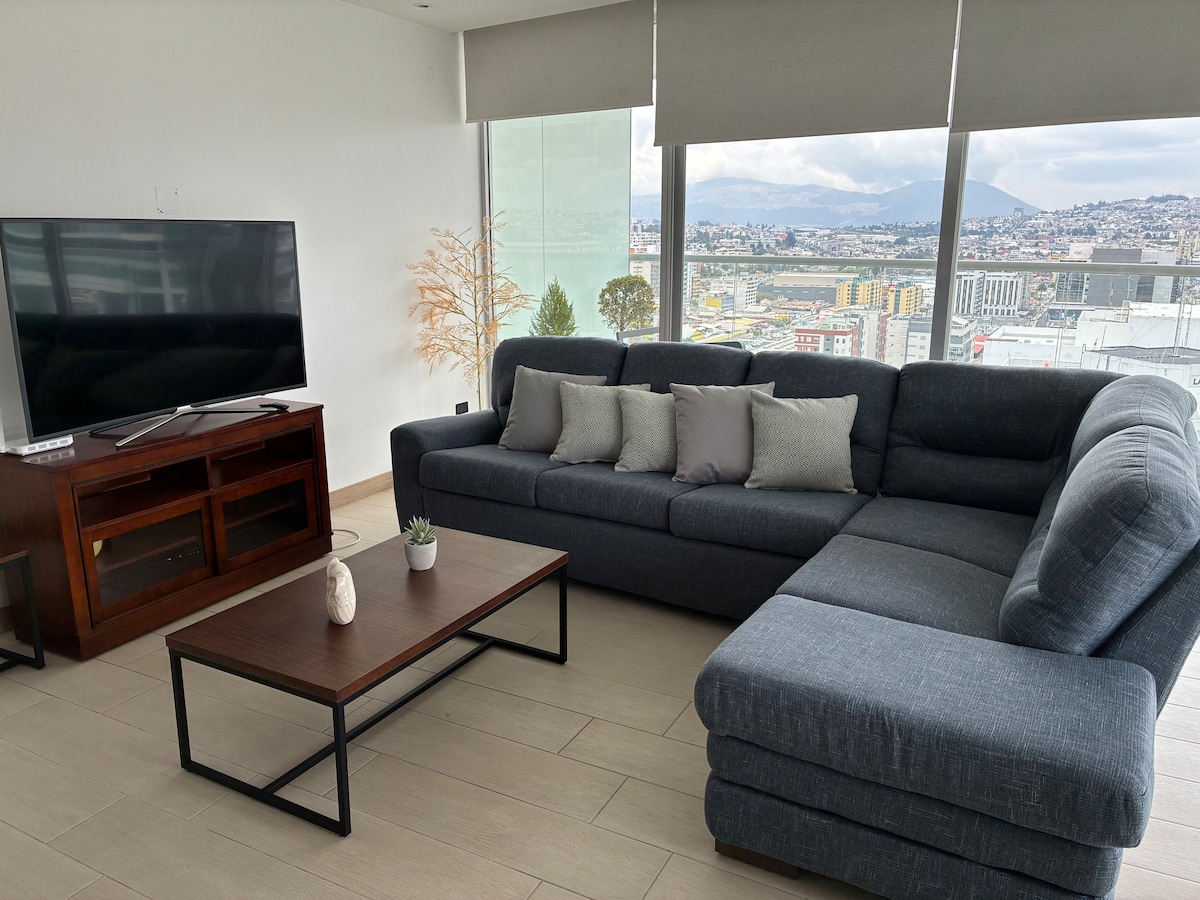 Uživajte i opustite se u našem luksuznom apartmanu, koji se nalazi u finansijskom sektoru Quita. Sa 17. sprata legendarnog Edifa. Prvo, možete ustati s najboljim pogledom na izlazak sunca. Zgrada ima ekskluzivne društvene prostore: bazen, mokre prostore i teretanu, za nezaboravnu posjetu. Stan razmišlja o vašoj udobnosti, u njemu ćete pronaći sve što vam je potrebno za ugodan i ugodan boravak: Wi-Fi, opremljenu kuhinju, TV s Netflixom.