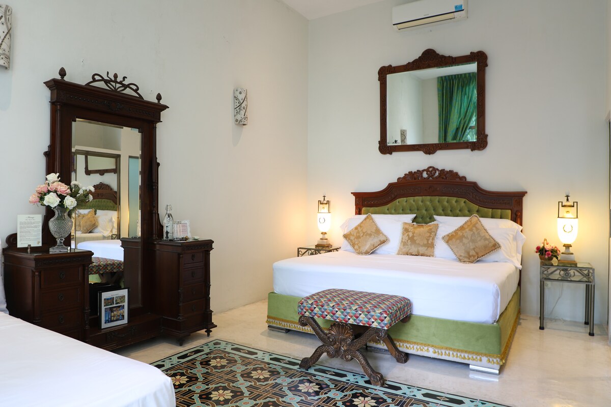 Ljupka prostrana soba u prizemlju s luksuznim bračnim krevetima , uvezenim plahtama ,poplunima. Vrlo veliko kupatilo s tuš kabinom. Ova prostorija izlazi na bujno unutrašnje dvorište, ima plafone od 18 stopa, zidove okrečene u ruke, starinski namještaj i podove od ručno izrađene tjestenine. Cijena uključuje gurmanski doručak , besplatan Wi-Fi, stropne ventilatore, klima uređaj i besplatan minibar koji ima čistu vodu, pivo i osvježenje. Postoji zajednički bazen za plivanje. Svake noći je besplatna degustacija tekile u zalasku sunca na krovu!