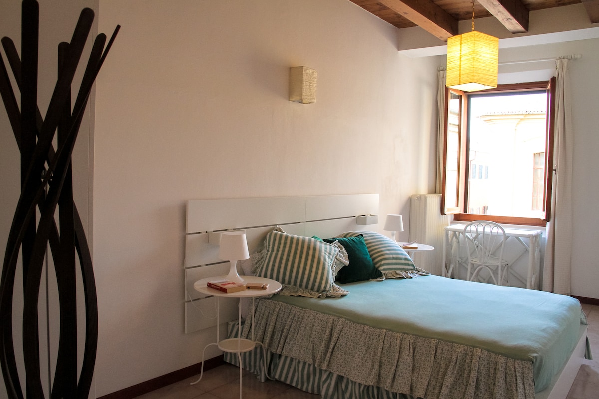 Bilocale luminoso e accogliente posto nel centro storico di Cesena a pochi passi da tutti i punti principali della città (università,ospedale,stadio,teatro, ippodoromo,biblioteca,stazione e punti di interesse) Ingresso indipendente dotato di tutti i confort essenziali, appena ristrutturato, composto da una zona giorno con divano,cucina attrezzata, bagno con doccia e camera con letto matrimoniale possibilità di aggiunta di secondo letto a 2 piazze,biciclette a noleggio giornaliero.