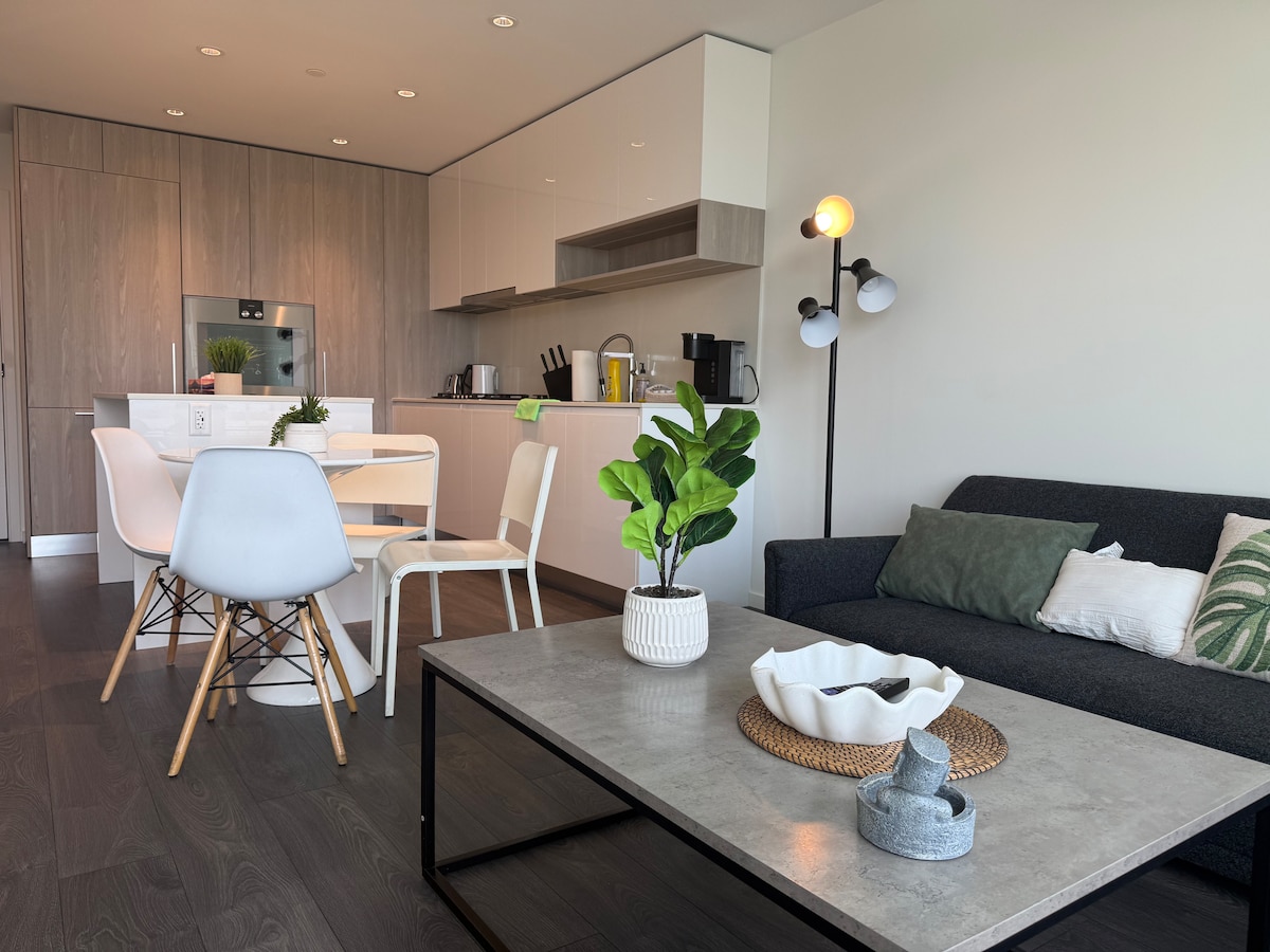 Ovo potpuno novo utočište, koje se nalazi u centru, a ipak je mirno skriveno, nudi najbolje od života u Richmondu. Izađite van i uživajte u kupovini, restoranima i svakodnevnim pogodnostima, a terminal SkyTrain-a je udaljen samo nekoliko minuta, pa možete bezbrižno putovati do centra Vancouvera i Međunarodnog aerodroma u Vancouveru. Unutrašnjost smještaja je pažljivo opremljena svime što vam je potrebno za bezbrižan i udoban boravak. Nova nadogradnja: Potpuno neprozirne zavjese osiguravaju dublji i mirniji san.