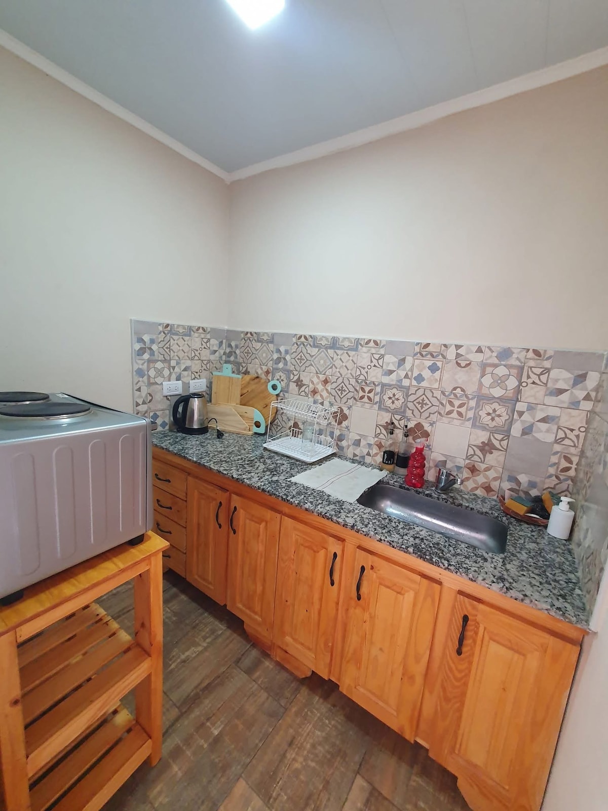 Potpuno novi stan, smješten u srcu Chivilcoya, idealan za one koji traže udobnost i dobru lokaciju. Topla, svijetla i pažljivo opremljena atmosfera, dizajnirana za odmor i poslovne boravke. Ima Starlink WiFi, 4K Smart TV s Netflixom i Disney+ i klima uređaj koji se nalazi u dnevnoj sobi i hladi cijeli stan, uključujući spavaću sobu. Moderan i funkcionalan prostor za uživanje u boravku u potpunoj udobnosti.