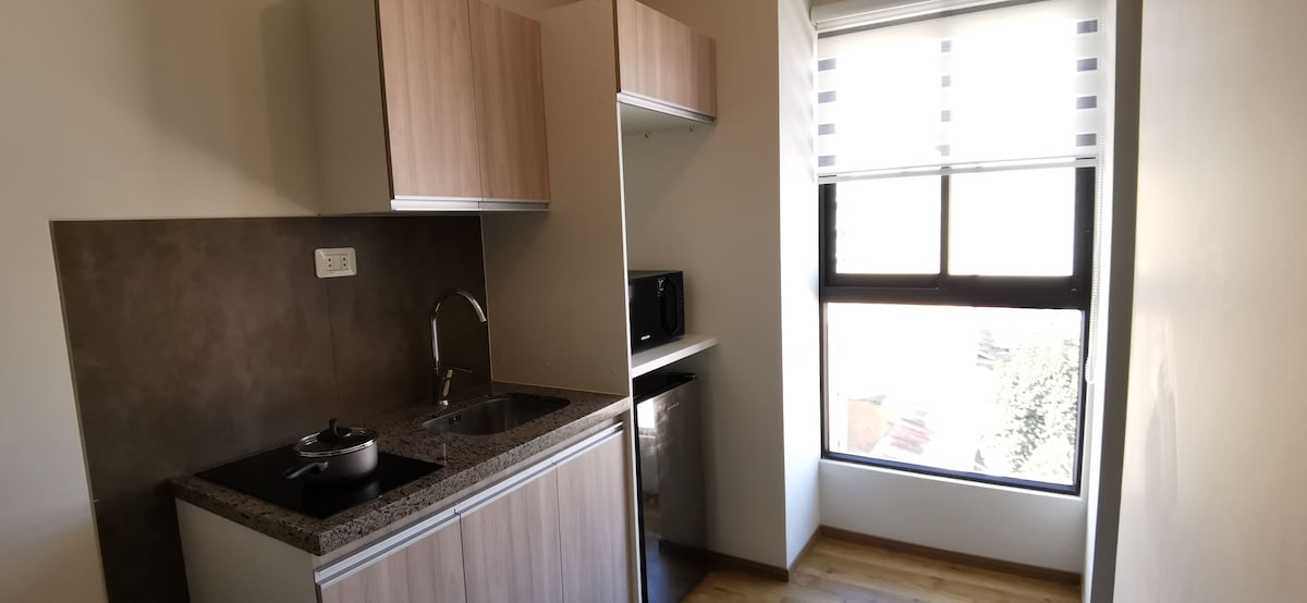 [Španski, engleski, francuski] Svijetli i udobni novi studio apartman, u najboljem dijelu Cochabambe u blizini trgovačkih centara, restorana, parkova, finansijskih subjekata, tržnica, supermarketa, barova. Zajedničke prostorije uključuju preljevni bazen (trošan vikendom i praznicima), churrasquero, besplatne mašine za pranje veša, TV Netflix. Rado ću vam poželjeti dobrodošlicu i pružiti vam ugodan boravak.