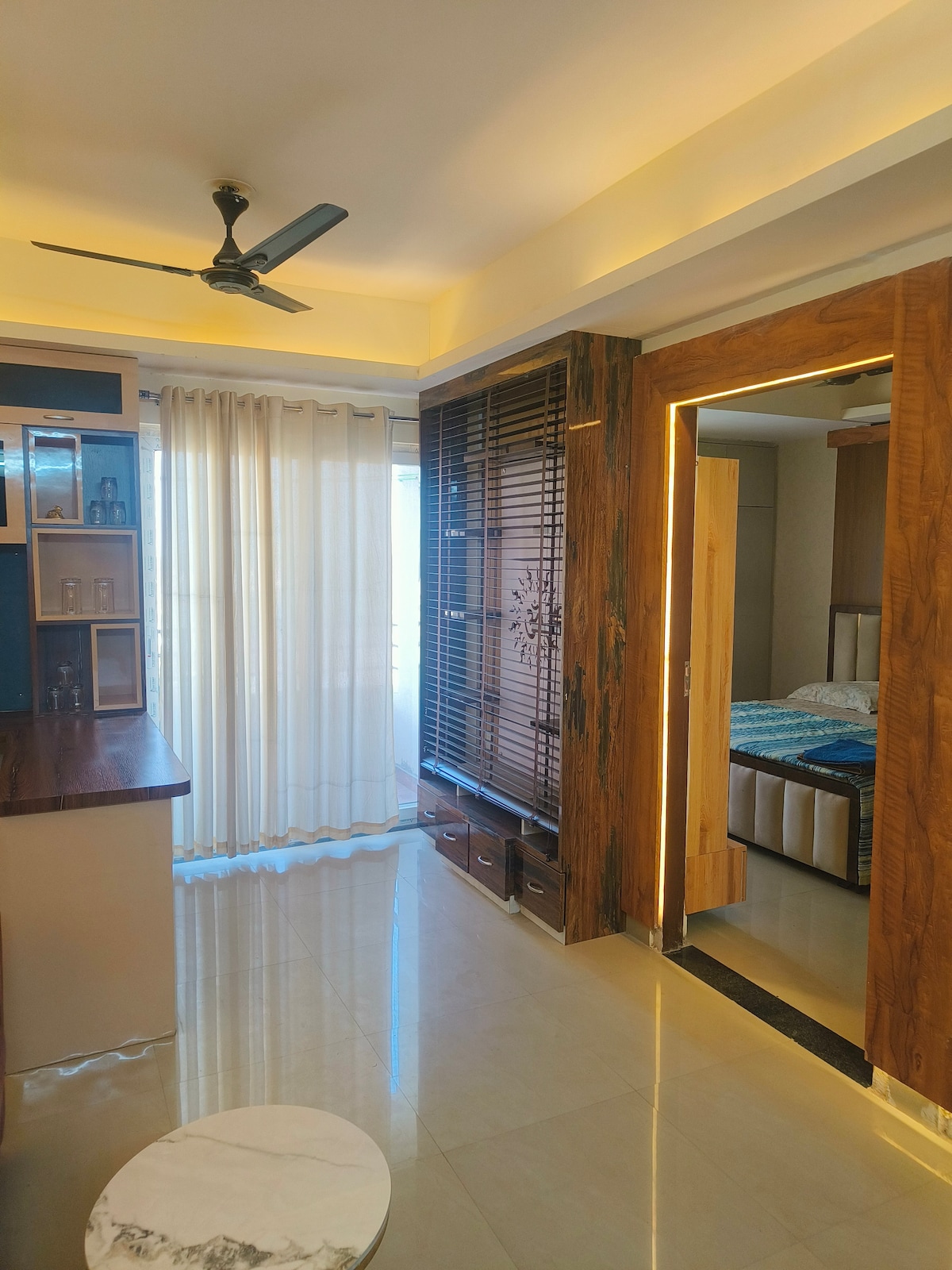 Doživite luksuzan boravak u ovom lijepo uređenom 2BHK stanu s modernim interijerom, udobnim spavaćim sobama, elegantnim dnevnim boravkom i potpuno opremljenom modularnom kuhinjom. Smještaj nudi vrhunsku udobnost s pametnom rasvjetom, elegantnim namještajem i mirnim pogledom na balkon. Savršeno za porodice ili grupe koje traže opuštajući i nezaboravan boravak; u blizini svih gradskih pogodnosti, ali dovoljno mirno da se opuste.