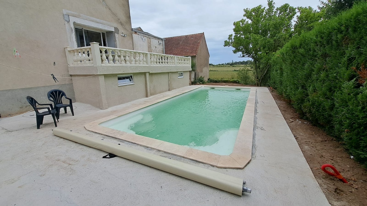 Maison chaleureuse pour 10 pers. Jardin, piscine privatif & jacuzzi (mai à sept) hameau paisible idéale pour se retrouver,se ressourcer en famille ou entre amis! A 30mn de la sortie d autoroute A proximité: voie verte, sentiers de randonnées nombreux chemins balisés autour , parfaits pour découvrir la campagne berrichonne à pied, à vélo. Vignoble, marchés locaux avec produit du terroir. Ville et commerces à 5 min en voiture. Convivialité et repos garantis !